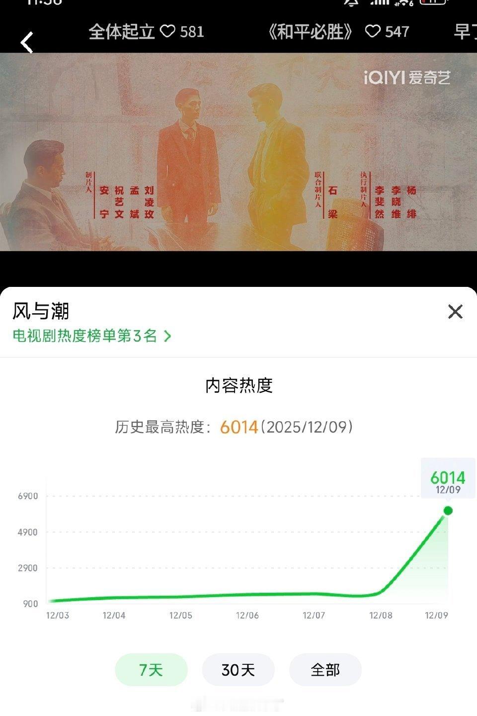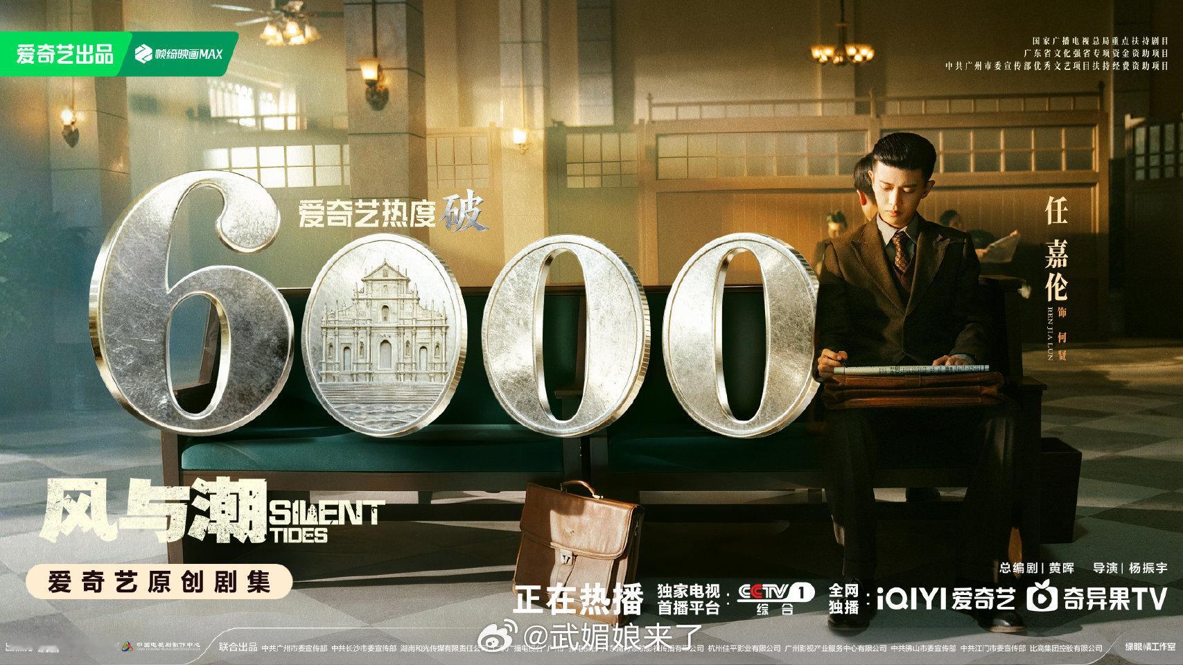 《风与潮》首日20点开播即锁V,22点非会员才能看,开播不到4小时爱奇艺热度破6000!同时央一实时收视率峰值达2.3551%,位列下半年首播实时收视率TOP1。并且何贤角色的单日热度破1.5亿!