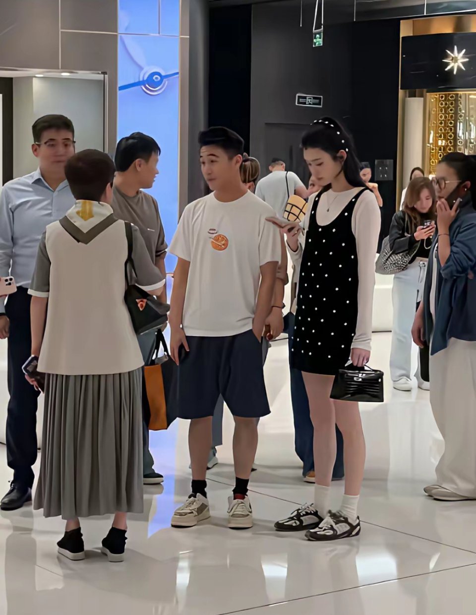 36岁奚梦瑶和老公、婆婆一起在海南三亚逛免税店,她穿着连衣裙,打扮像十八岁少女,
