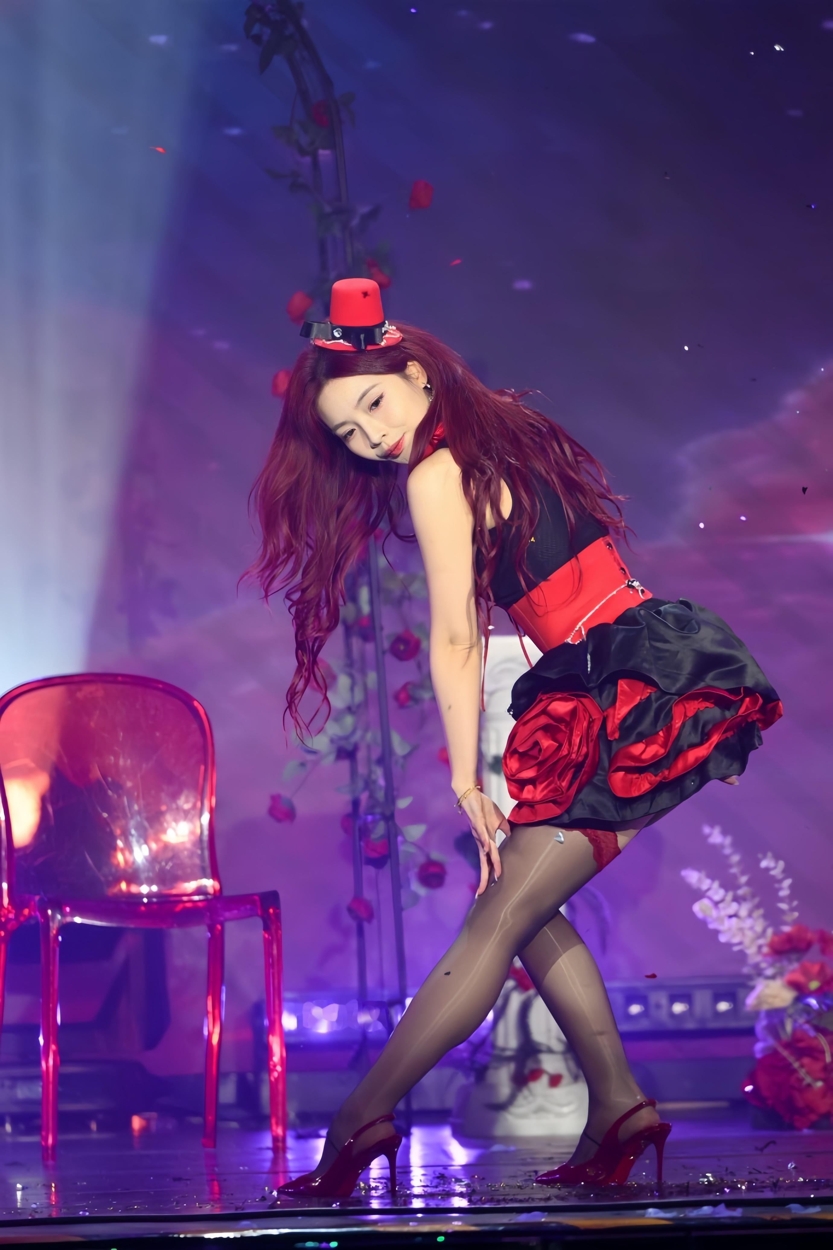 白鹿花朵红裙白鹿最新物料白梦妍很白所以很适合红色