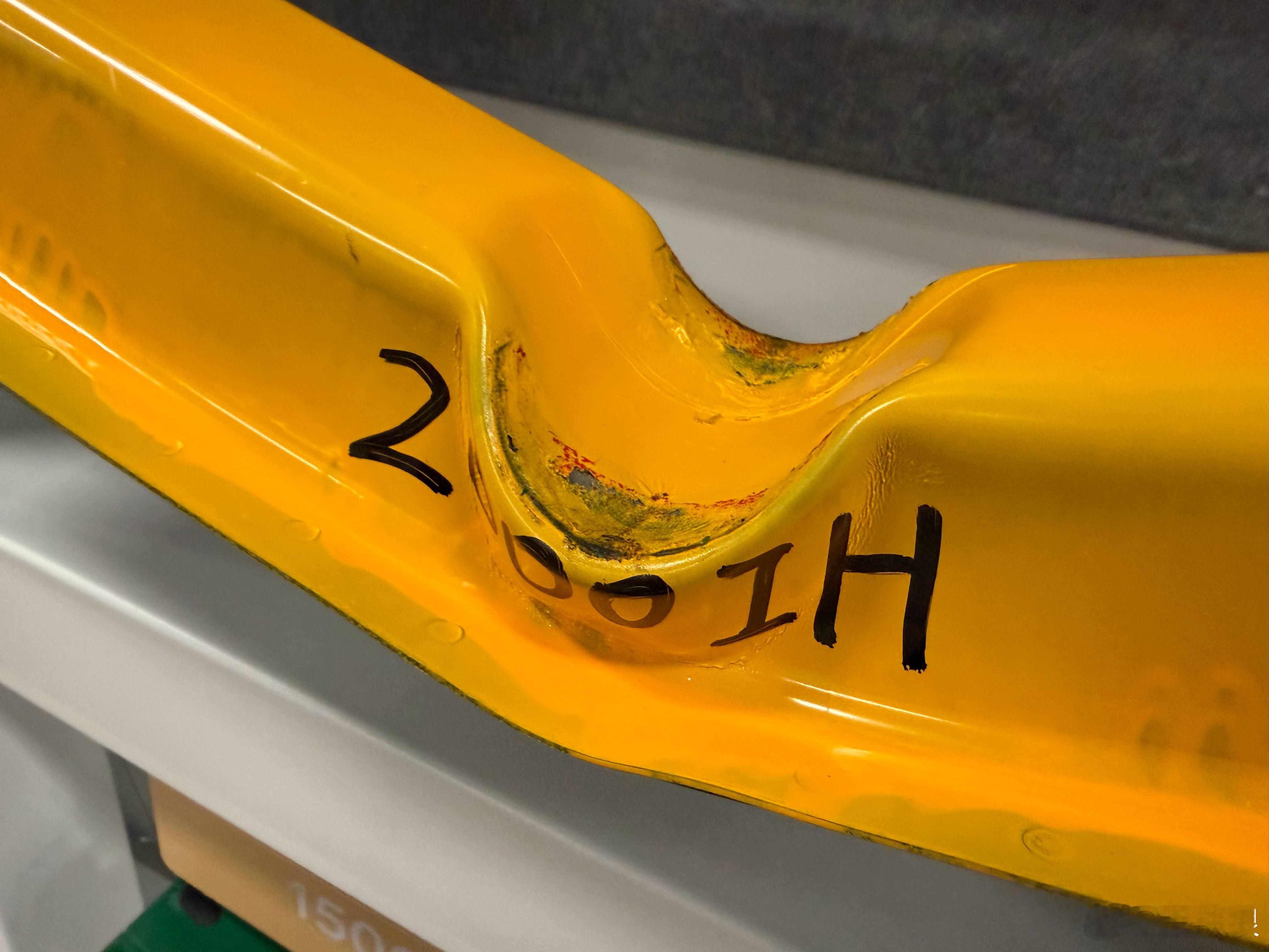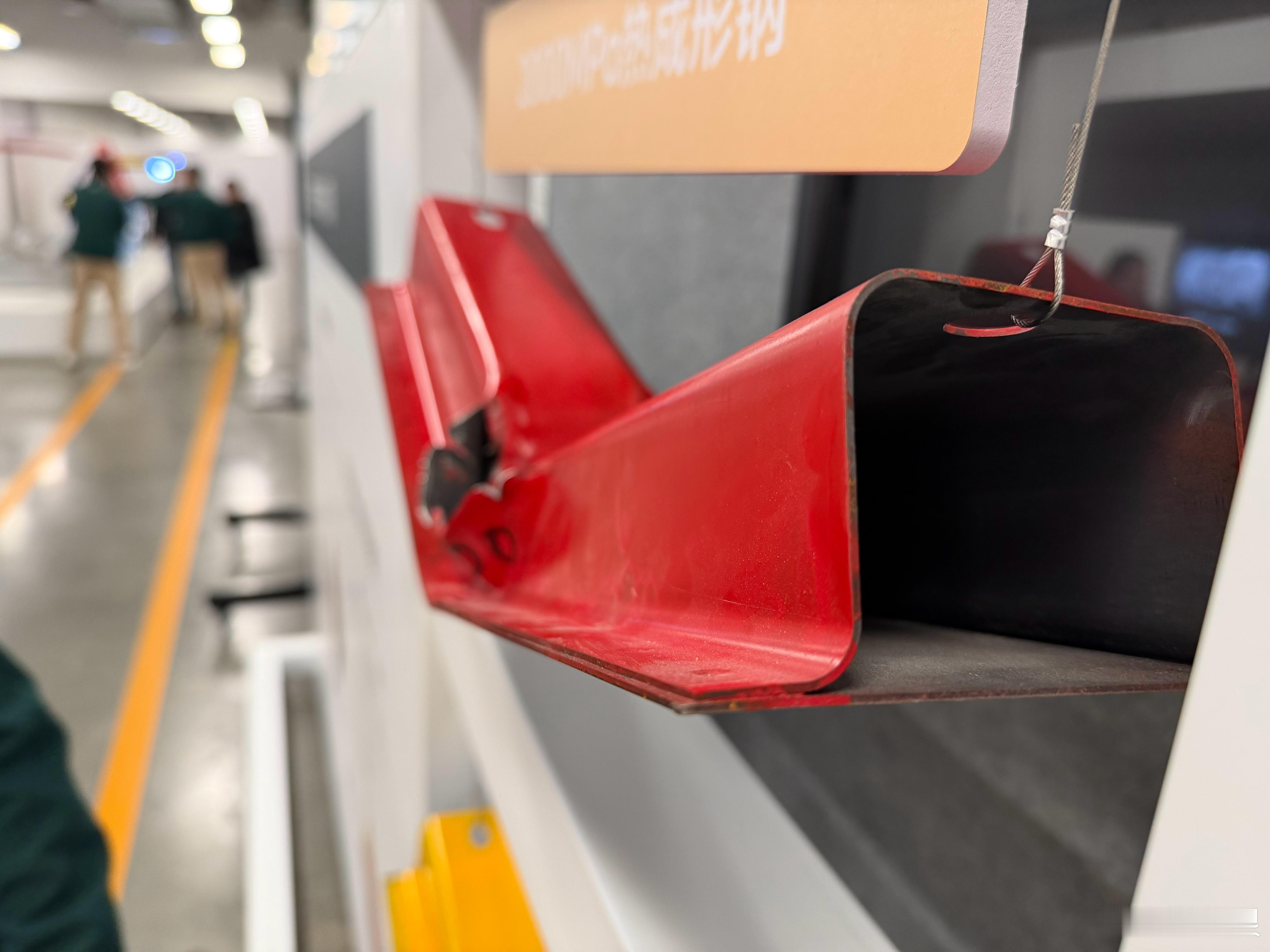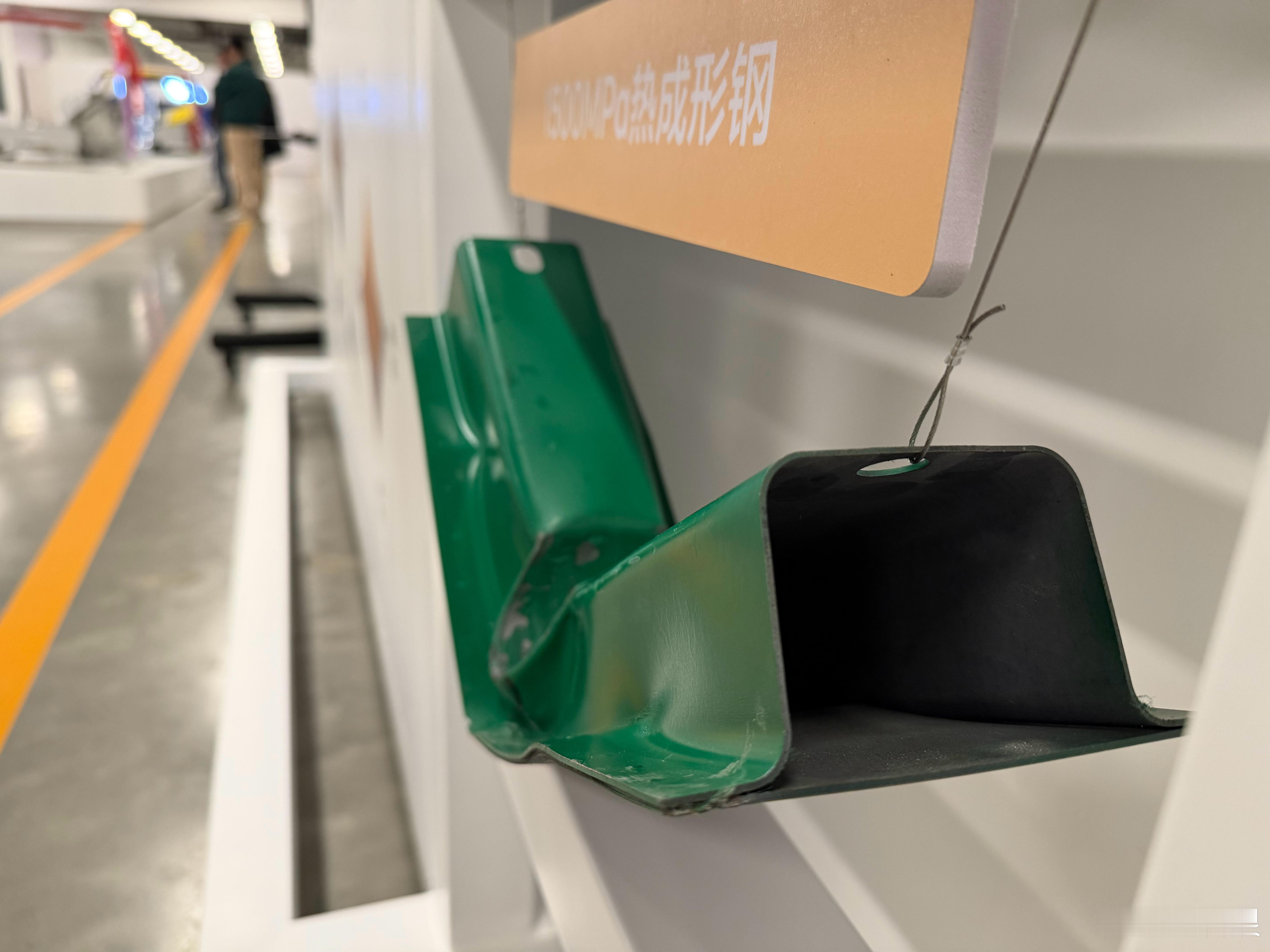 杂牌车材料研发成果,非常直观。红黄绿三块材料形状厚度完全一样,遭受了完全一样的冲击。控制了变量。绿色是1500MPa的热成形钢,可以看到它变形更厉害,但没裂开。没裂意味着它都变形成这个样了,还是能提供足够的强度。“韧性”较好。黄色是理想自研的2000MPa热成形钢,给它起名叫“2000I H”,很明显变形小,而且不裂。一样,强度可能有所下降但下降不多。“韧性”较好。红色是传统2000MPa热成形钢,屈服强度数据和黄的一样。但是可以看到它裂了。裂了意味着相较于明显裂开之前强度断崖式下降。“韧性”一般。强度一样表现也会有区别,就好像两个人身高体重一样,但体脂率肌肉量包括运动表现可能有区别。在钢材上,虽说都是2000MPa的,但实际表现区别较大。比如说撞车的时候,在某一临界的速度之前,韧性好一点差一点区别不大。但一旦到达该速度,韧性差的那个裂开了,断了,就无法提供保护了。我说得有问题不,专业领域有点犯怵帮挑挑毛病。理想材料研发成果大盘点