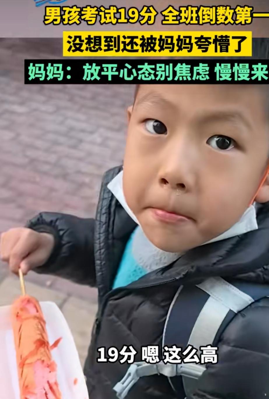 男孩考19分被妈妈夸到结巴 这妈妈可以,不仅不批评还反向鼓励,看孩子吃着烤肠,都快变成胚胎了哈哈哈哈哈