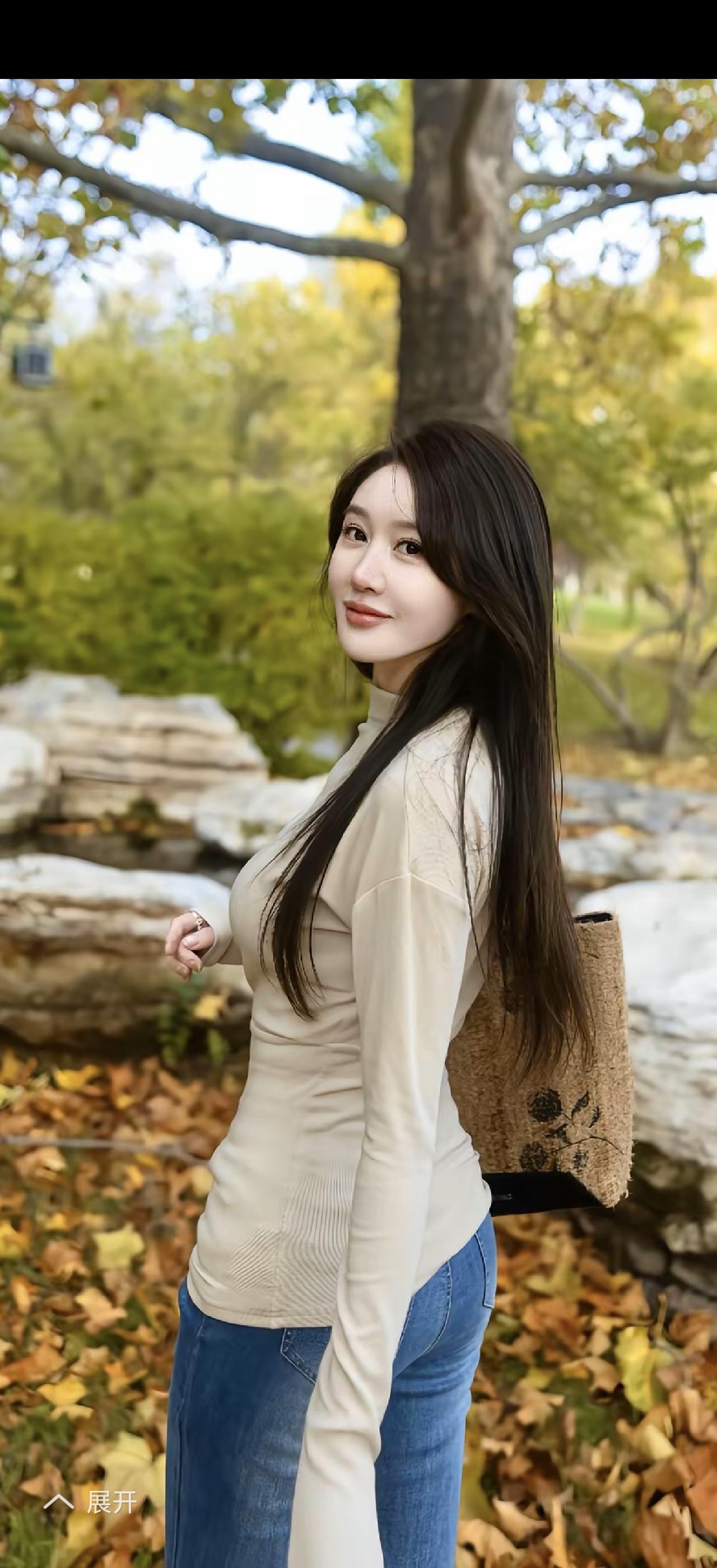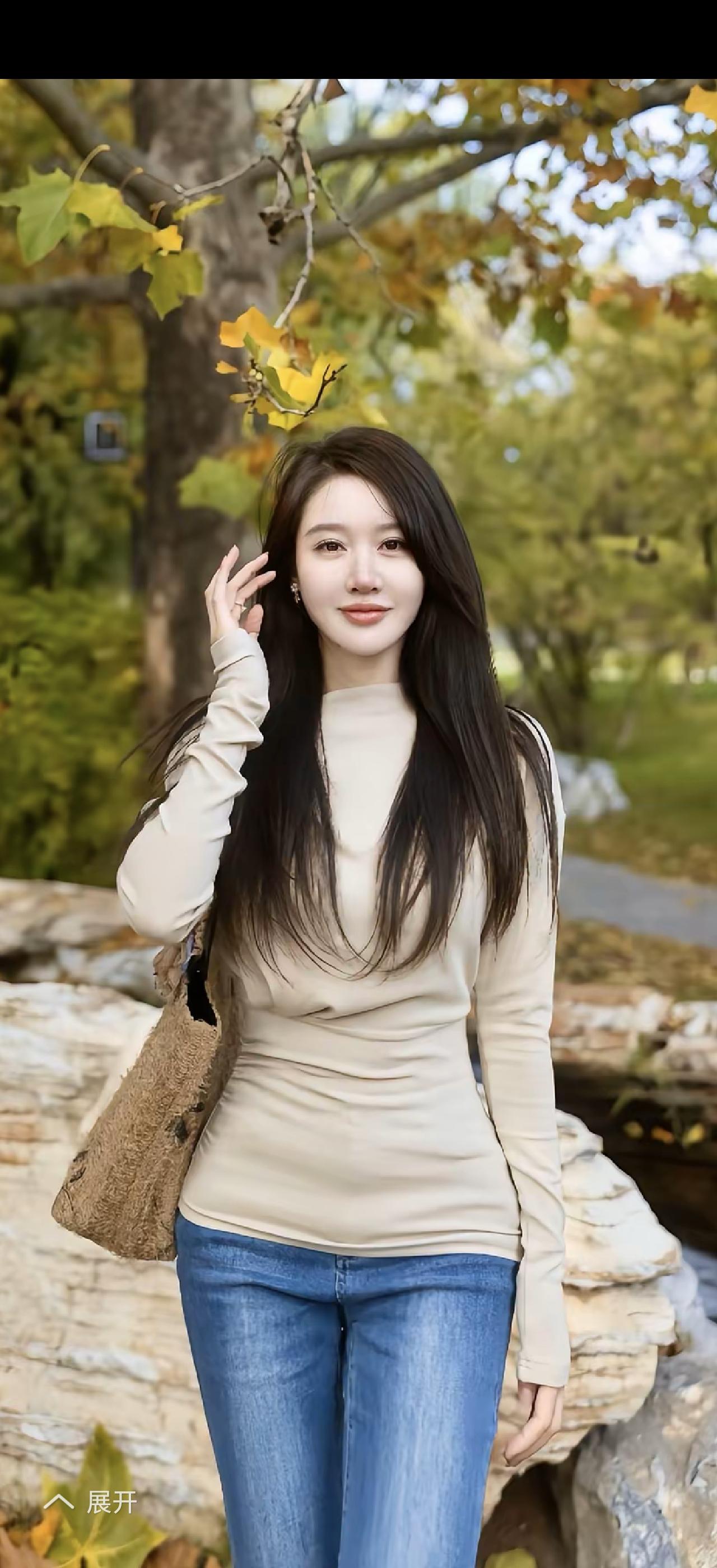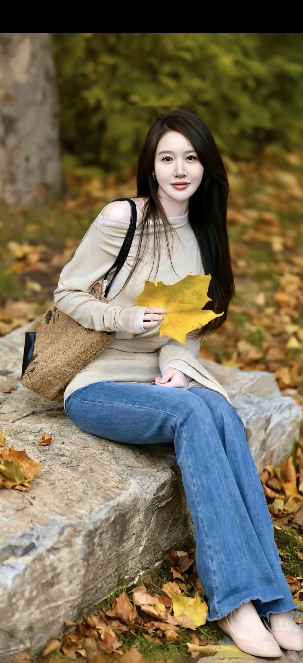 秋日暖阳下的温柔少女,手捧落叶,笑靥如花。