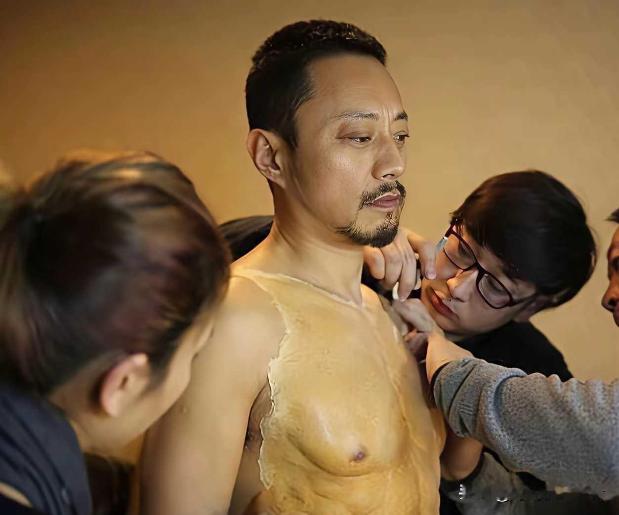 张涵予曾经真是对自己太不自信,为了拍戏戴假胸肌,腹肌。 那时候真的以假乱真,因为张涵予一直都是硬汉,型男的感觉。