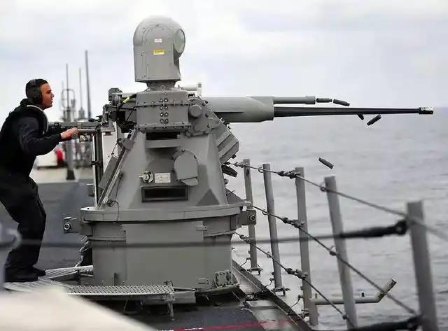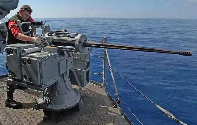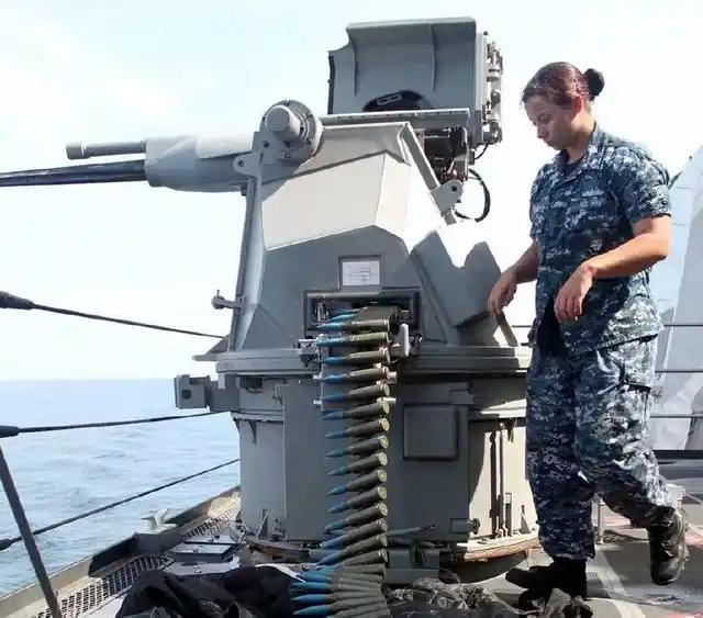 陆海两栖的M242大毒蛇25毫米链式机关炮 M242大毒蛇虽然没能与BMP-1结合,却下海了。 该炮最初装在巡逻舰艇上做主炮,对抗近距离内的敌方小型快艇、蛙人、漂浮式水雷等目标,还可以应对恐怖分子发动的袭击。最初为手动操作型号,海湾战争后,增加了遥控功能,2000年的“科尔”号事件后,进一步加以改进,换装了炮座、光电系统,提高了提高了自动化程度,并登上主力舰船。 新野郎曰:“综上所述,该炮还是很成功的。”