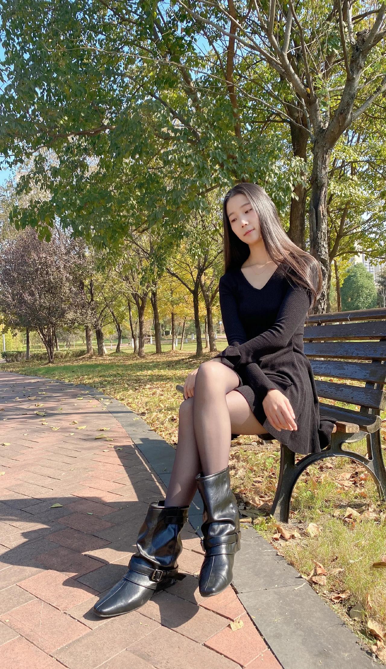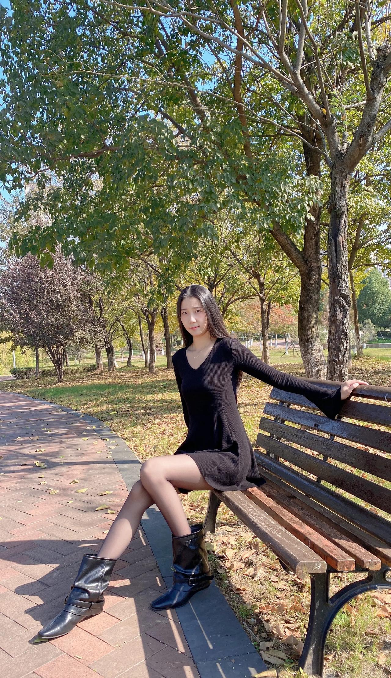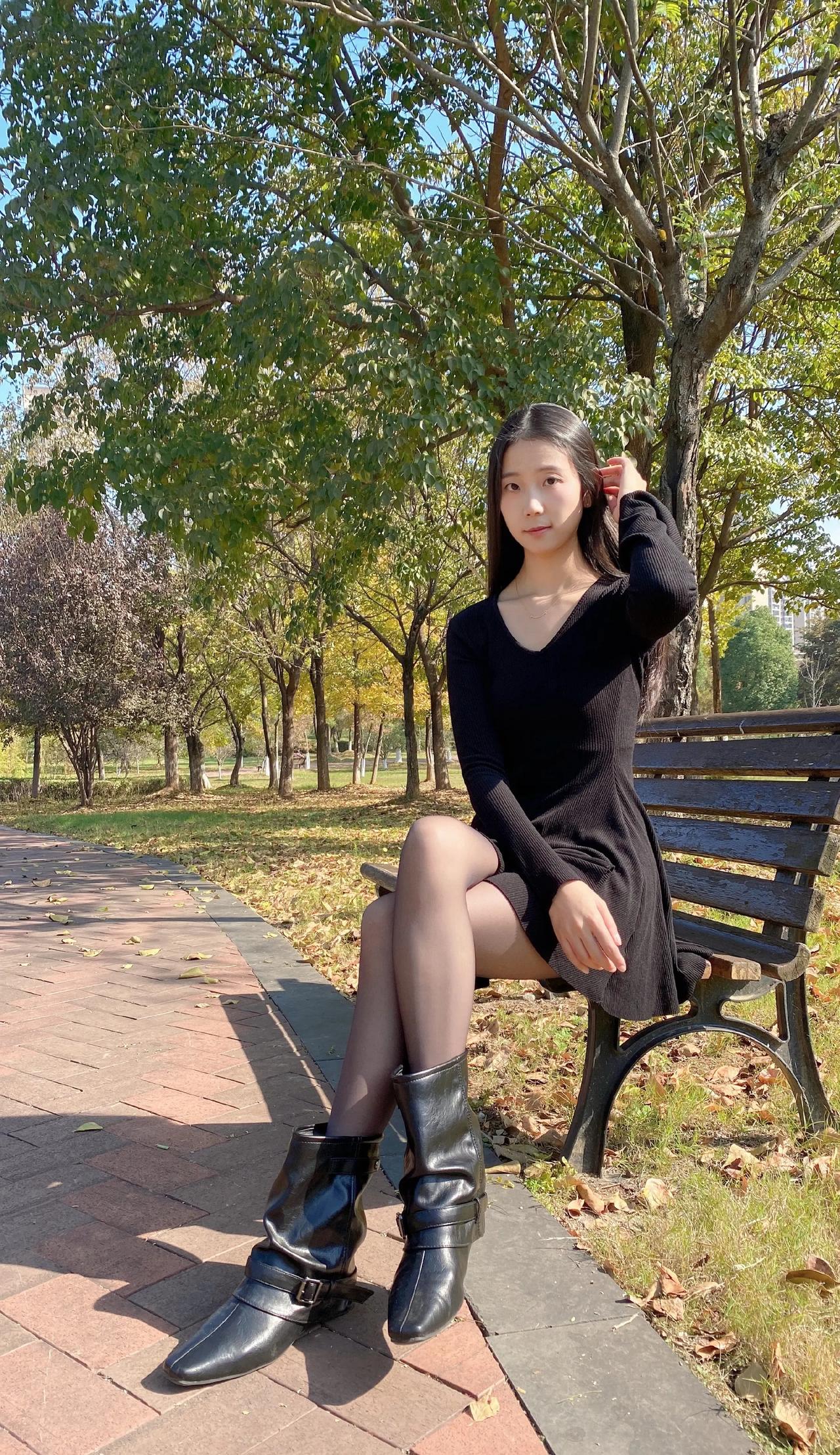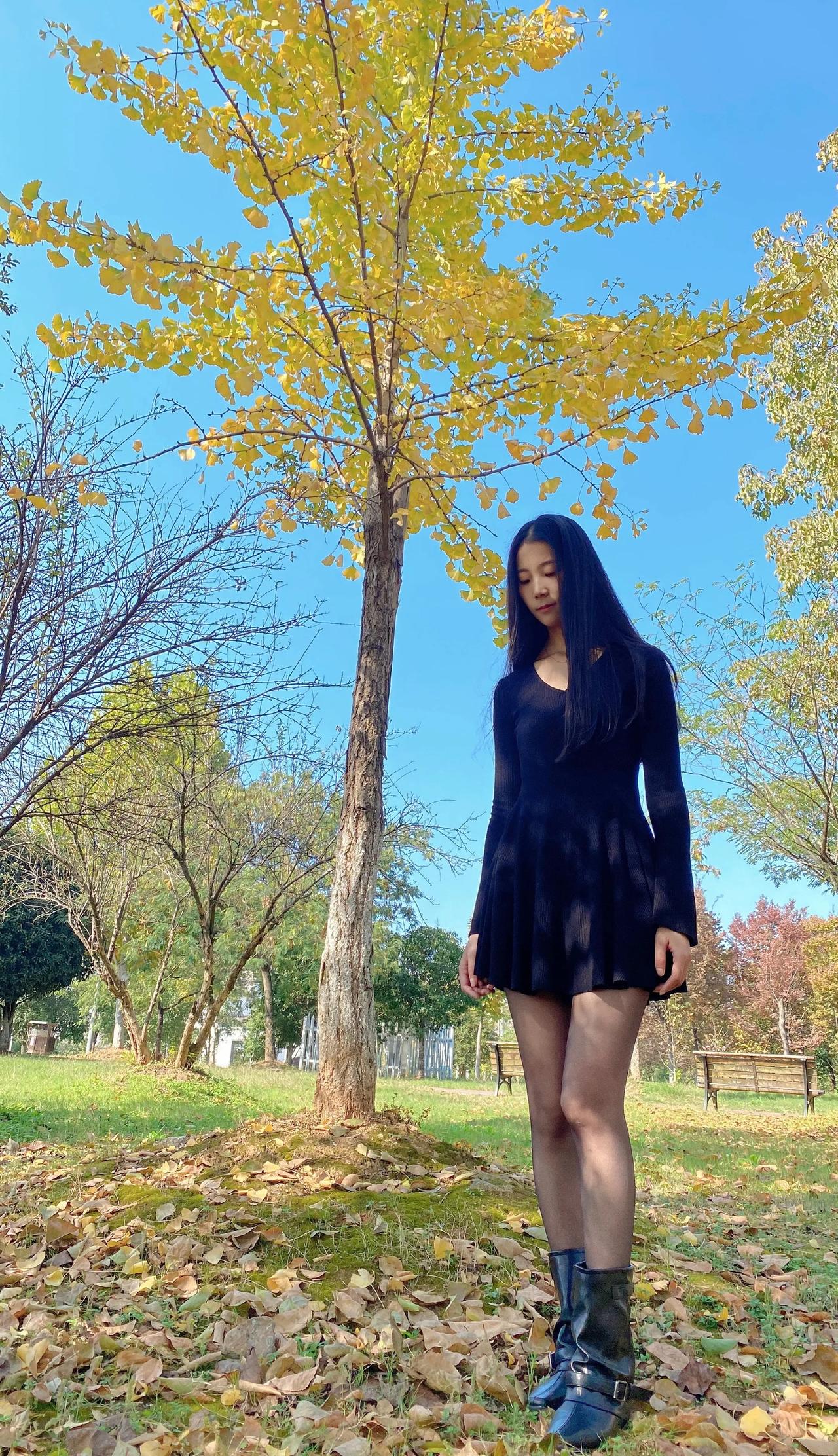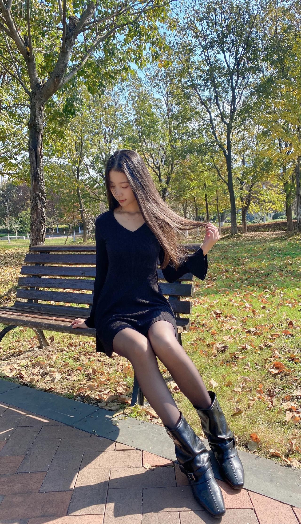 黑色修身连衣裙+伞裙摆设计,既显身形曲线,又带点灵动甜美元素;长袖款式适配秋日温和天气,纯黑配色在金黄秋景里更显清冷质感。 搭配做旧感牛仔短靴注入酷飒气质,中和了连衣裙的柔美,让造型更有层次。能充分展现穿着者清冷甜酷的秋日魅力。黑衣连衣裙穿搭 通勤黑色连衣裙 黑裙如何穿出高级感?