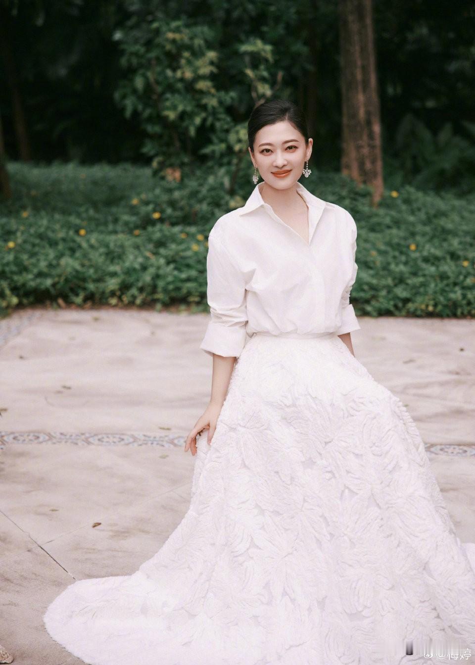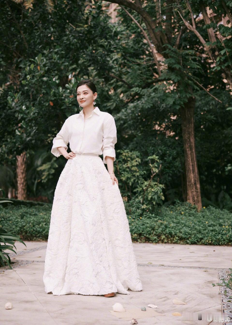 赵今麦甜美脸庞搭配海军领短袖,过膝袜下的美腿线条匀称