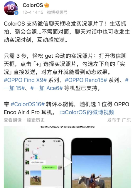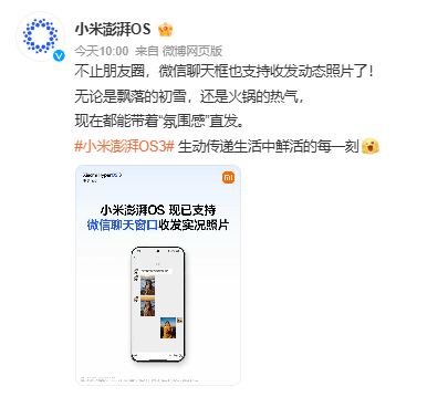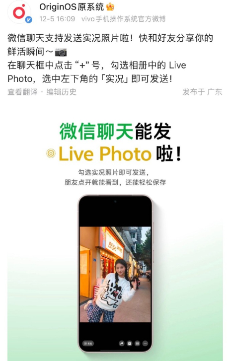 vivo、OPPO前几天就上线了估计整个安装端都可以发live大家可以更新系统试试小米澎湃OS微信聊天能发实况图