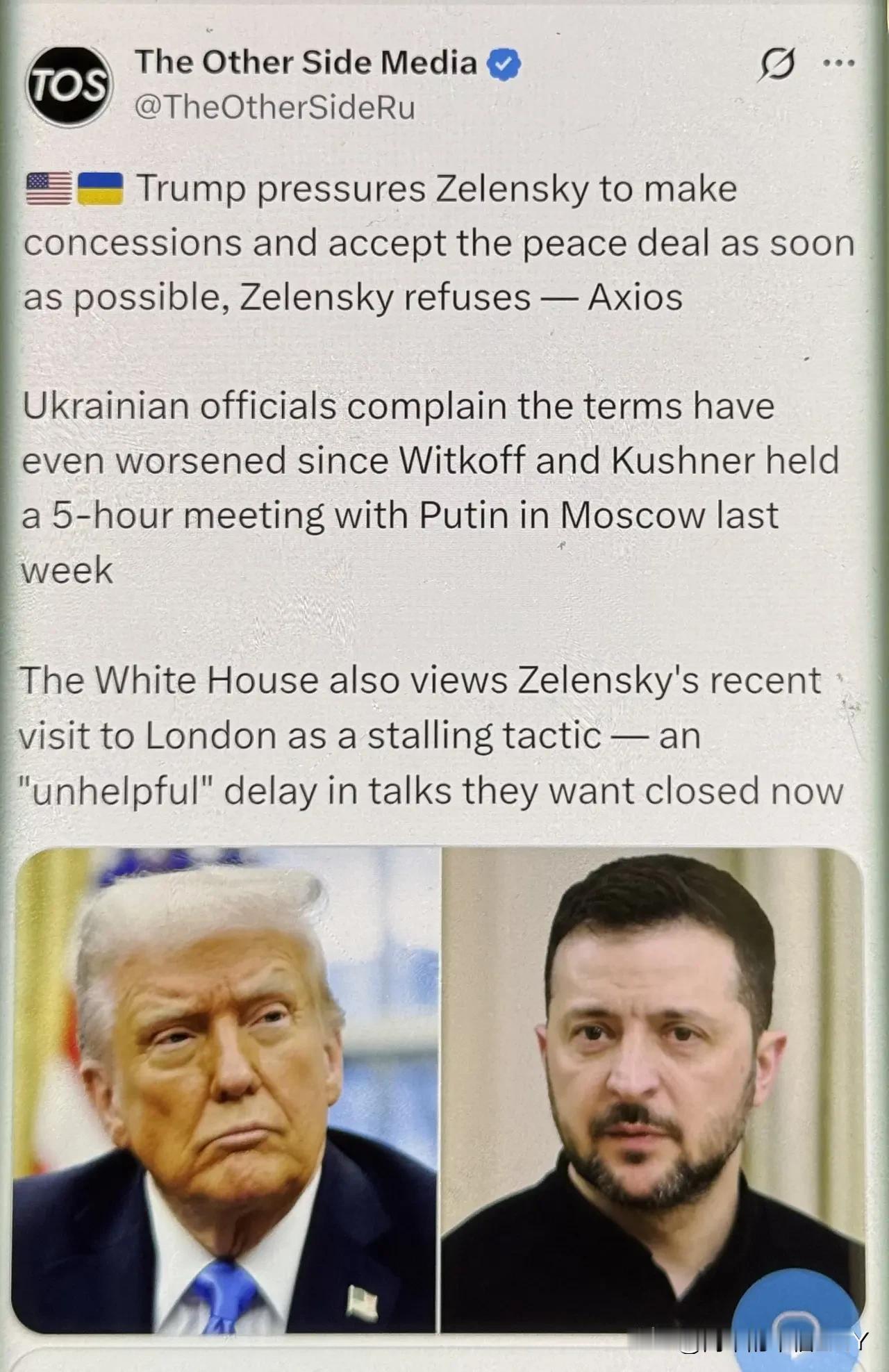 乌克兰表态,要出手了! 12月9日,乌克兰直接把新和平方案砸给美国,态度硬到没商量!原28条诉求砍到20条,果断删掉没用的“全面赦免”,但和平时期80万兵力底线绝不动摇,领土完整更是寸步不让! 乌克兰此番方案大幅精简优化,将原本28条诉求压缩至20条,果断剔除“全面赦免”这类华而不实的内容,唯独和平时期80万兵力的底线咬死不放,领土完整更是分毫不让,字字句句都透着破釜沉舟的决心。 乌克兰这次调整方案堪称精准务实,深谙取舍之道,摒弃虚头巴脑的诉求,死死锁定核心利益不放。吃过口头承诺的亏,如今早已不复当初的轻信,认准了美国的法定安全保障才是根本,不愿再被空口白话牵制。 1994年《布达佩斯备忘录》的教训刻骨铭心,美方当年的承诺最终沦为空谈,乌克兰被坑得惨痛至极,这次绝不肯重蹈覆辙,直言必须拿到美韩级别的共同防御条约,没有实打实的法律硬保障,一切和平谈判免谈。 核心诉求清晰直白,就是要美国用法案将援助和支持彻底钉死,把安全保障落到纸面,杜绝口头承诺的变数,这份清醒和强硬,是战火淬炼出的生存智慧。 方案里80万兵力的底线守得极死,领土完整更是绝不退让,哪怕牺牲停火机会,也绝不放弃对相关方的追责,这般不卑不亢的态度足够硬气。乌外长早已放下狠话,绝不会用追责换取短期停火,不贪一时安宁。 要将“问责”坚持到底,这份执着背后,是对国家尊严和民众牺牲的敬畏。乌克兰心里门儿清,兵力是国家安全的底气,领土是国家存在的根基,这两样容不得半点妥协,一旦让步就是永久损失,与其苟且偷生,不如硬刚到底,用坚定立场换取长远保障。 不过乌克兰的强硬诉求,想要落地难度极大,美国国会这关就是最大阻碍。美方嘴上支持得慷慨激昂,可真要上升到立法层面给出安全保障,必须经过国会点头同意,短期来看纯属镜花水月。 美国内部党派分歧严重,对乌援助本就争议不断,要推动立法签订共同防御条约,牵扯多方利益博弈,绝非易事。口头支持无需付出成本,立法保障却要实打实投入资源,甚至可能绑定美国的安全责任,美方未必愿意这般投入。 后续能否达成共识,全看美方是否愿意拿出实际行动,光靠嘴炮根本解决不了问题。乌克兰敢这般硬刚美国,底气也源于自身实力和外部支撑。如今乌军手握“爱国者”“IRIS-T SLM”等先进防空系统,防空防护拉满,应对空中威胁底气十足。 欧洲方面,德国、荷兰、捷克等多国已然联手,为乌克兰搭建起导弹防御网,直面各类安全威胁,外部援助的稳定支撑,让乌克兰有了博弈的资本。说白了,乌克兰这次递出和平方案,压根不是要跟俄罗斯求和,而是先牢牢锁定领土完整和兵力底线。 再转头跟美国掰手腕,索要足够的安全保障,每一步算计都精准狠辣,尽显博弈中的生存智慧。俄乌冲突持续至今,乌克兰早已看清大国博弈的残酷,明白安全感只能靠自己争取,口头承诺终究靠不住,唯有法律层面的硬保障才值得信赖。 这次精简方案精准出击,既展现了谈判的诚意,又守住了核心利益,不被虚浮诉求牵绊,全力聚焦安全保障和国家根本利益,这般清醒务实,让局势更添变数。美国的态度至关重要,若愿意给出法定保障,俄乌冲突或许能迎来新的转机;若依旧只愿口头敷衍,乌克兰大概率会继续硬刚到底,战火也难以平息。 说到底,乌克兰的强硬方案,是夹缝中求生存的必然选择,历经战火洗礼,早已褪去稚嫩,懂得用立场和实力争取权益。后续局势走向,全看美国能否给出匹配乌克兰诉求的实际行动,口头支持终究撑不起乌克兰的安全期待。 乌克兰要的是实打实的保障,美国要的是自身利益最大化,这场博弈的最终结果,将深刻影响俄乌冲突的走向,也关乎地区乃至全球的战略格局。