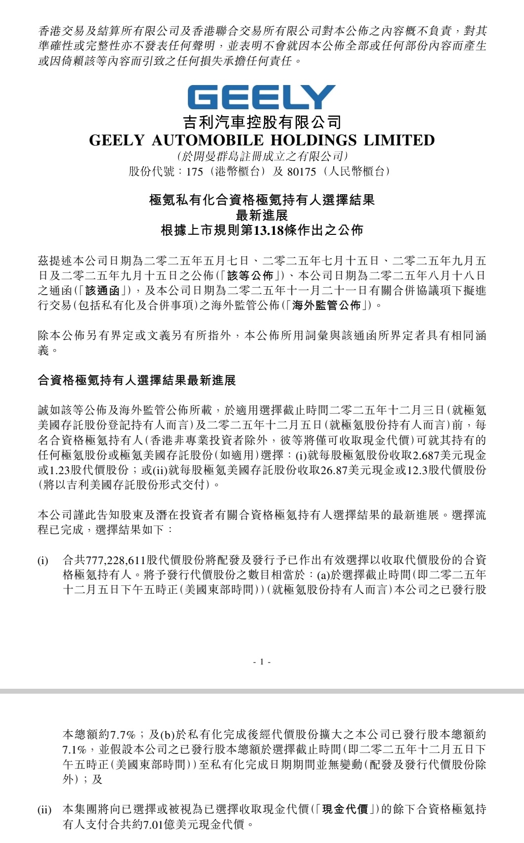 吉利与极氪合并已步入收官阶段!7月15日双方签订合并协议,按规划交易将于2025年12 月29日或之前完成。根据吉利汽车披露的极氪私有化对价选择结果,大约70.8%的极氪持有人选择股份对价,足见其对吉利汽车长期增长的坚定看好。加上近期极氪9X、领克900凭高价值产品实现高利润,且吉利将实现主流、中高端与豪华三大细分市场的全面覆盖,未来其盈利能力将持续增强,股东的长期回报也将稳步提升。