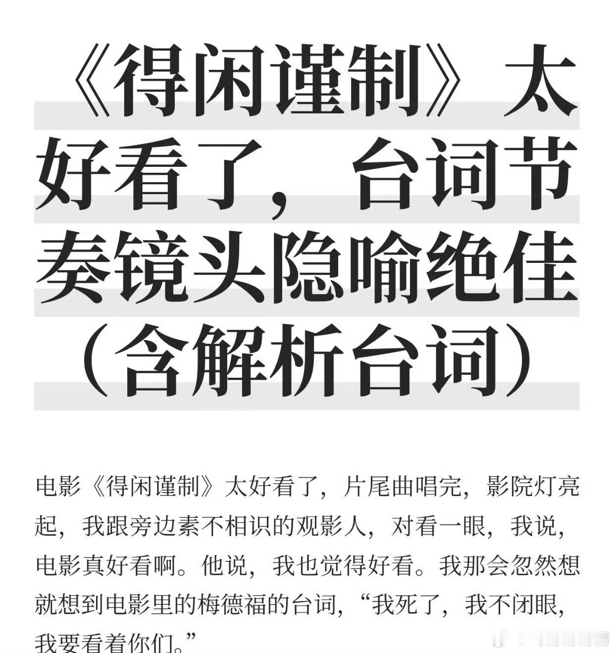 得闲谨制的票房占比比排片多了两倍,20%的排片贡献了40%的票房,这个时候应该加排片才对,上映的时机不对,动2占着大排片,就不能硬撞,如果搁在暑假档,这种口碑爆棚、口口相传、品质过硬的好电影20亿起步了