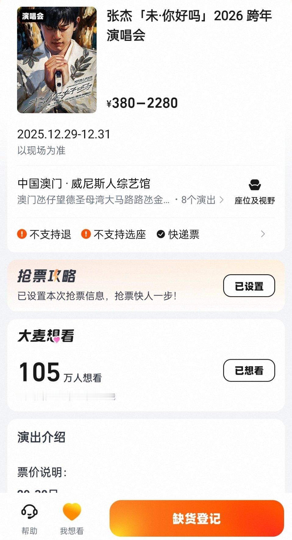 张杰跨年演唱会预售抖音直播间见摇钱树澳门首个张杰跨年演唱会破百万想看张杰跨年演唱会开票秒没都没抢到票
