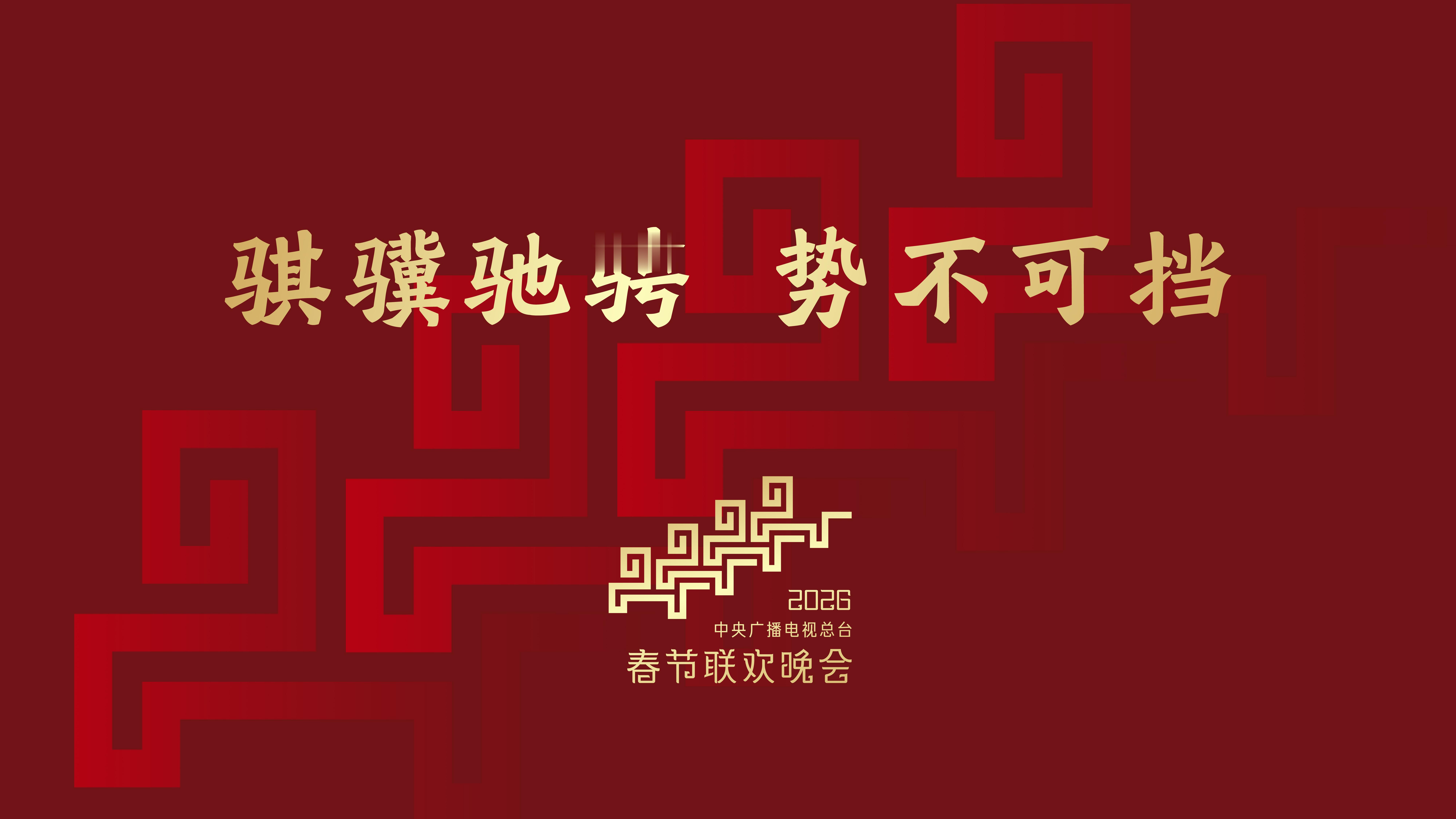 【马年春晚主题包含四马齐驱创意】马年春晚主题2026年总台春晚官宣 骐骥迎春至,万象启新程!12月10日,中央广播电视总台《2026年春节联欢晚会》发布主题和主标识。总台马年春晚以“骐骥驰骋 势不可挡”为主题,在欢乐吉祥、喜气洋洋的氛围中,与全球华人相约除夕夜,共赴一场昂扬奋发、喜庆温暖、满屏新意的文化盛宴。2026年春晚主标识从晚会主题“骐骥驰骋”中提炼“四马齐驱”的创意灵感,巧妙融合中国传统云纹、雷纹、回纹的经典元素,勾勒出四匹骏马齐头并进、拾级而上的视觉意象,既彰显传统美学韵味,又传递出奔腾奋进的时代气息。全新设计的“骐骥驰骋纹”还能无限延展、变换、循环,铺展出万马奔腾、势不可挡的生动画卷。