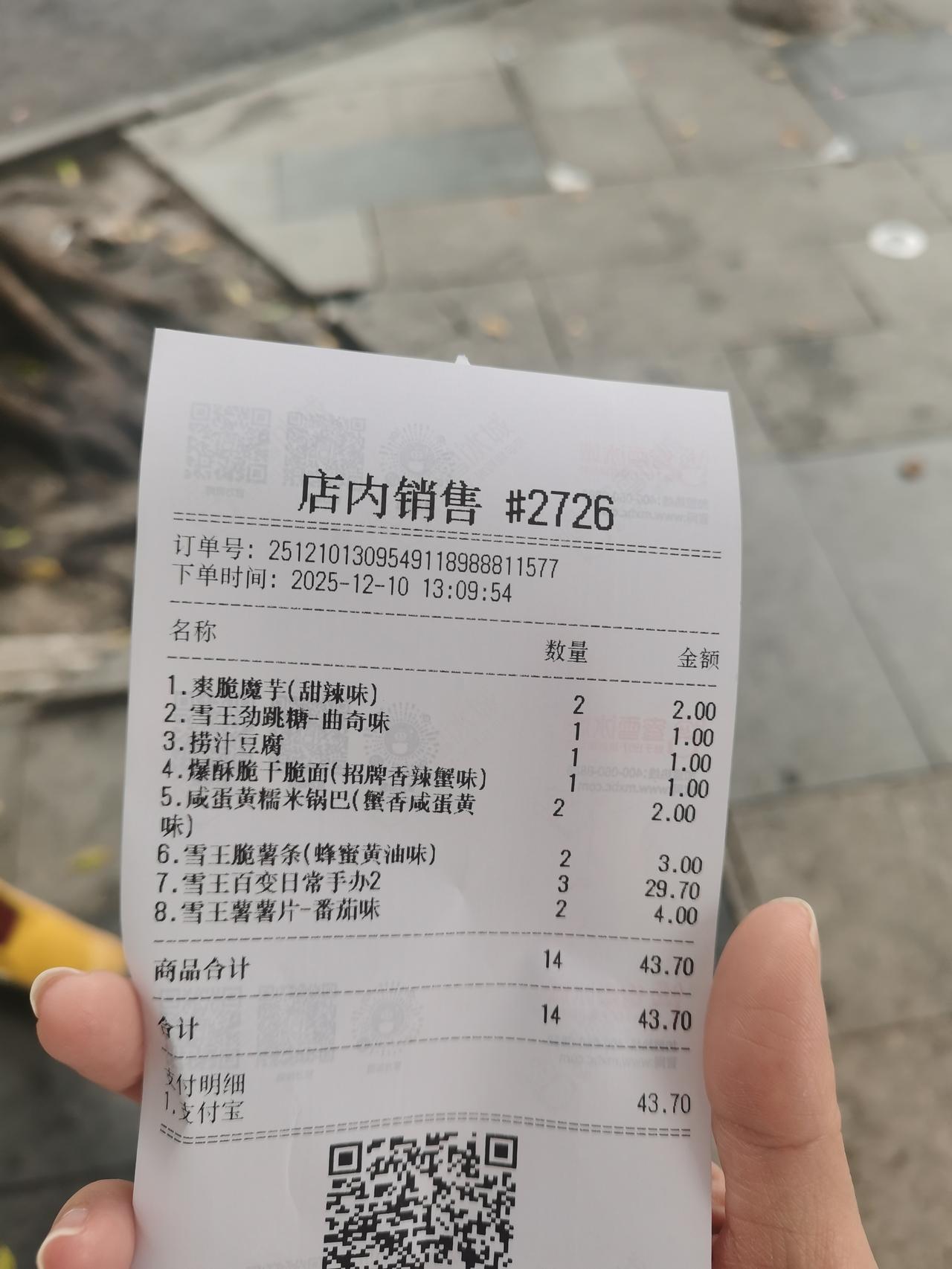 我来支持雪王啦,毕竟每次有事蜜雪冰城都捐款了,而且捐得还不少,雪王必须支持啊 最近我们这边新开了雪王的旗舰店,不仅有吃的,还有玩的,盲盒才要9块9,薯条薯片才两块,干脆面才一块,买买买,必须买。