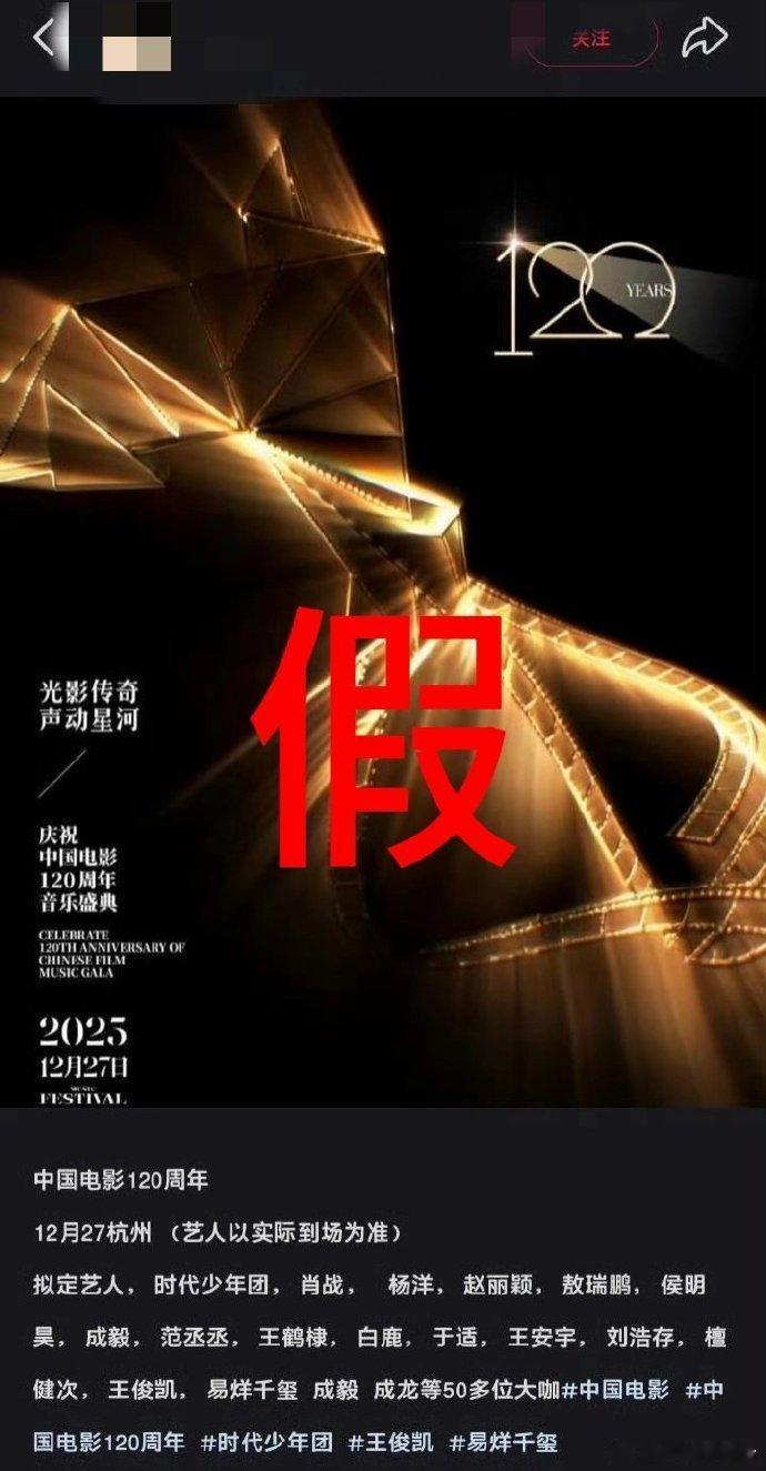 时团对接辟谣出席中国电影120周年活动 时团对接辟谣出席中国电影120周年活动咱就说至于27号为什么缺席新音还是静等官方消息吧,多多期待接下来的星光大赏舞台和新年音乐会呀~海口见啦~