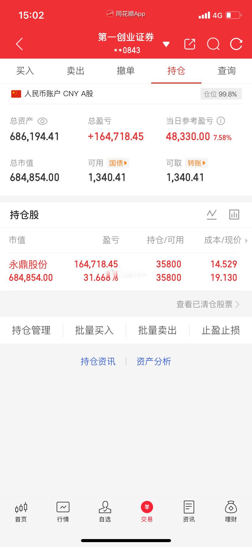 爱股程全职炒股日记40w本金挑战一年翻5倍,第( 70 )天!总资产:68w当日参考盈亏:+4.8w目前持有:永鼎股*特别声明:本文仅是个人观点及操作不构成投资建议,仅供参考!