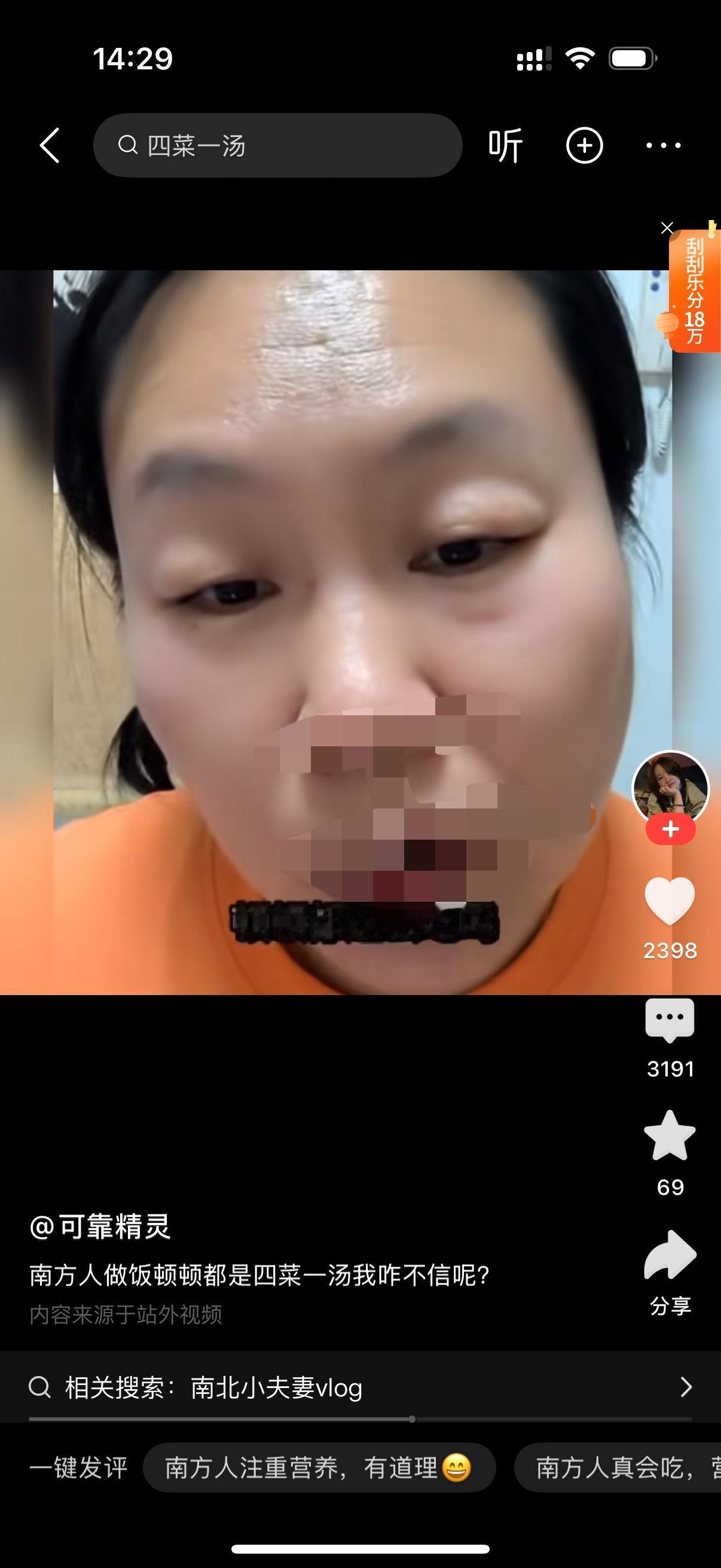东北女人一家三口中午只做了一个牛肉炖萝卜,被南方的一个朋友给刺激了。女人说和一个南方的朋友打电话说自己中午就做了一个菜。南方朋友觉得不可思议,问她,你们一家三口一顿就吃一个菜?东北女人说,是啊,一个菜顶一天的量。南方的朋友说,他们一家三口都是四菜一汤。东北女人问,顿顿都这样吗?吃得完吗?南方女人说,顿顿都是四菜一汤。菜量少一点,尽量不剩。东北女人有点破防了,也有点不相信,在网上不断地问,南方人真的顿顿四菜一汤吗?