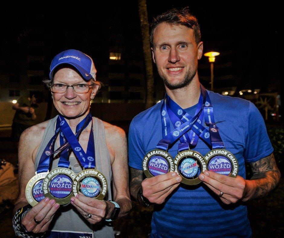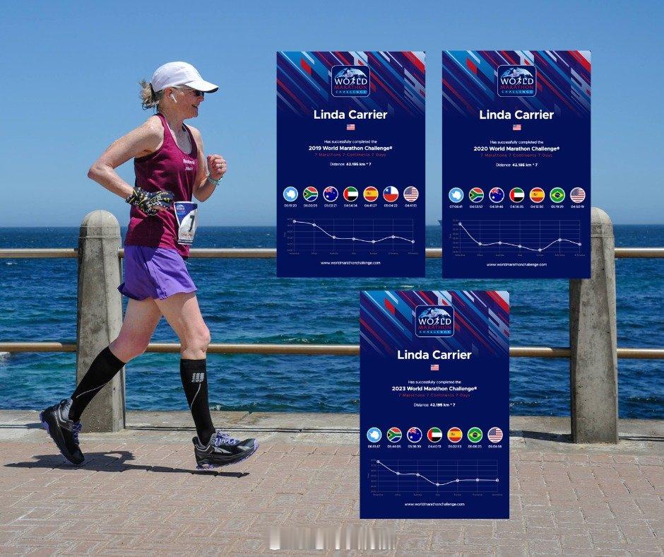 2025年 World Marathon Challenge 777 七天七大洲七个马拉松后的两位三刷选手。美国 Linda Carrier 分别于2019、2020和2023年完赛。而英国 Luke Wigman 则在2017、2020和2023年完赛。这个数量纪录我觉得迟早是中国人的。超级马拉松 马拉松 跑步