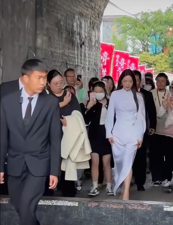 简直就是白衣仙子,不俗的颜值,可人的身材,飘飘黑发,加上柔软怡动的白色衣裙,竟让这个年龄的曾黎浑身冒着仙气。不知为啥,有这么多跟从,也许是参加活动,邀请方提供的特殊服务,本来,有这样的美女游园,给园林增添了别样的韵致,也增添额外的风彩。一群虎虎生威的工作人员伴随左右,打破了格调和宁静,真的是有伤大雅。曾黎就这么楚楚动人地走在亭台楼阁间,相信很多人会驻足观赏,而不会随意打乱这份美好,要相信粉丝都已经能够理性地对待明星出行,以后,不要这般的大张旗鼓。