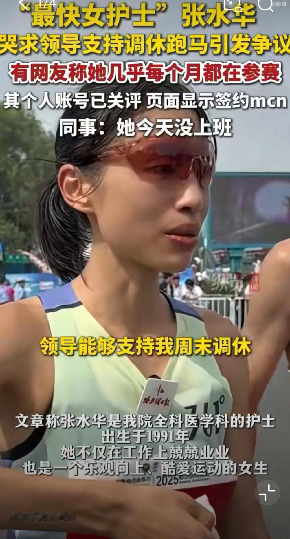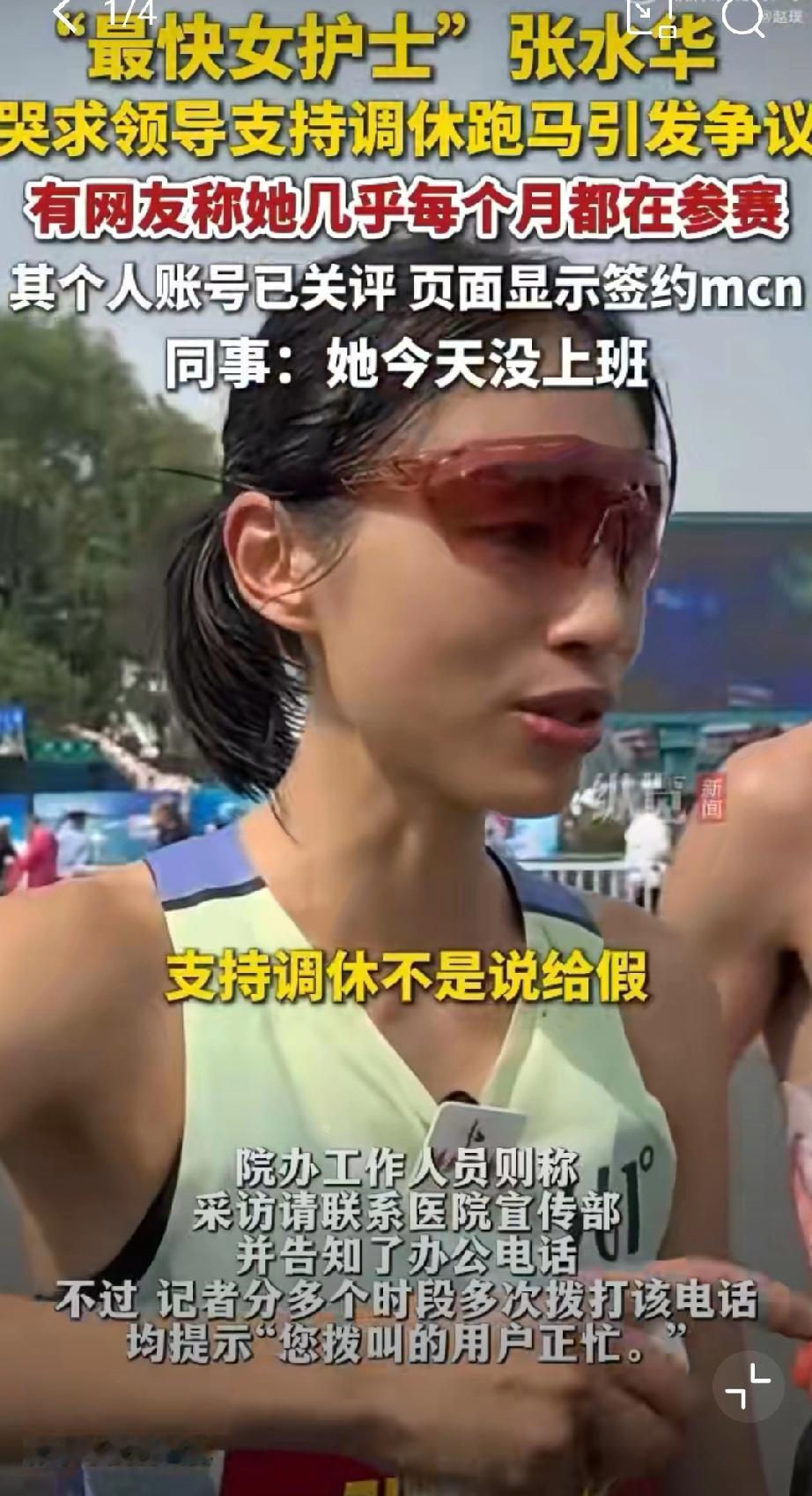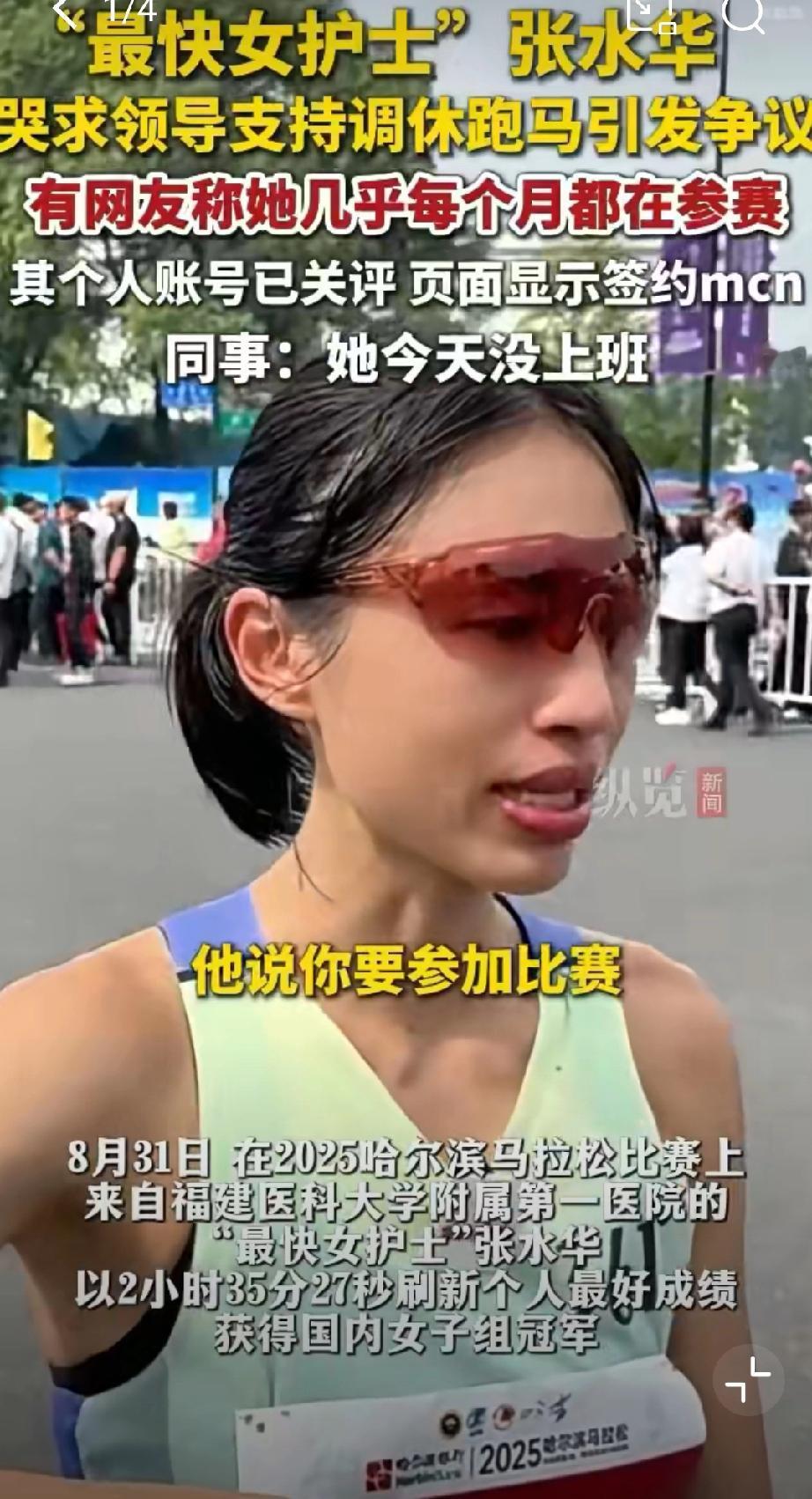最快女护士被医院警告处分6个月。 前段时间,赛后阴阳领导的最快女护士张水华,被处分了! 1️⃣与361°签约获取报酬未报备,违规兼职取酬的行为; 2️⃣为跑马拉松以虚假理由获得调休违规,破坏了医院的正常工作秩序。 看来还真是仗着自己有点成绩,给医院和同事上眼药了![笑哭] 所以之前发声明说不会让马拉松影响本职工作,只是场面话,这处罚一点也不冤枉啊了……福建最快女护士 医护风波 护士争议