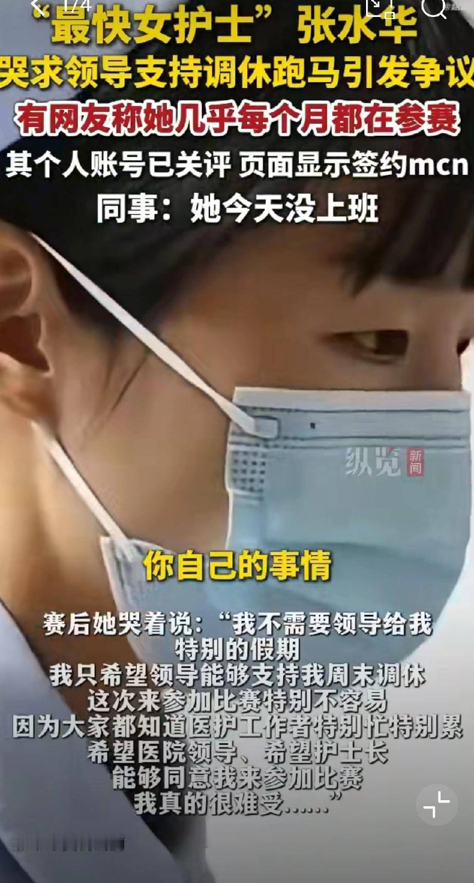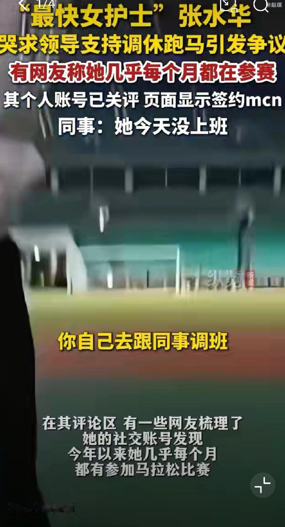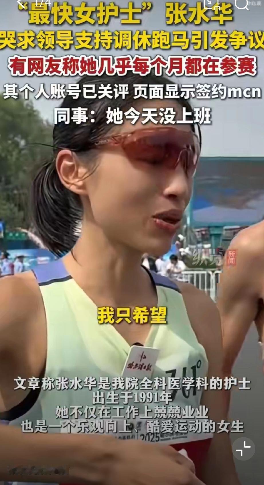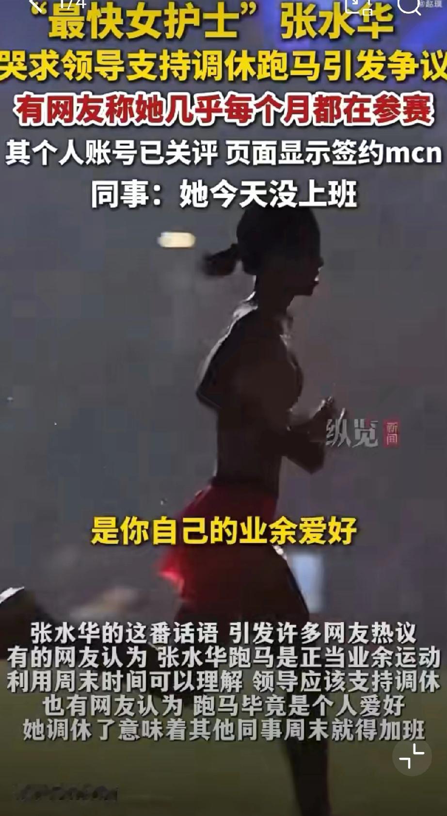 最快女护士被医院警告处分6个月。 前段时间,赛后阴阳领导的最快女护士张水华,被处分了! 1️⃣与361°签约获取报酬未报备,违规兼职取酬的行为; 2️⃣为跑马拉松以虚假理由获得调休违规,破坏了医院的正常工作秩序。 看来还真是仗着自己有点成绩,给医院和同事上眼药了![笑哭] 所以之前发声明说不会让马拉松影响本职工作,只是场面话,这处罚一点也不冤枉啊了……福建最快女护士 医护风波 护士争议