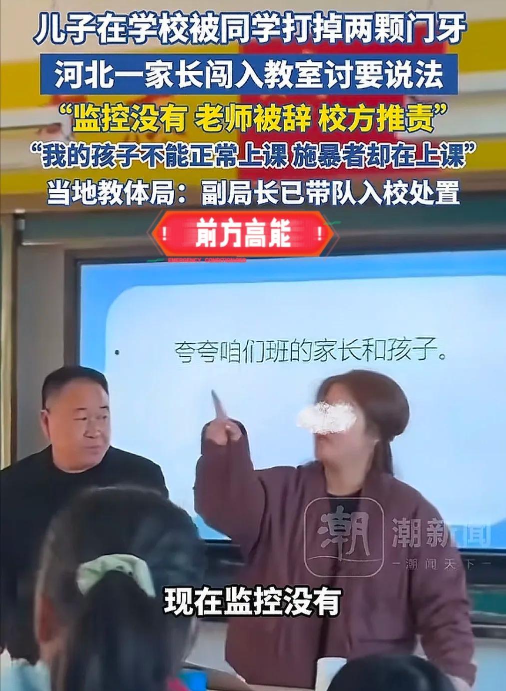 这位母亲也太勇敢了!事情发生在河北保定某中学,孩子被打断两颗门牙,事发后,学校却推卸责任不处理,为了讨要说法,这位母亲趁开家长会时,勇敢的站到了讲台上。 台下的家长们窃窃私语,不少人露出了感同身受的神情。谁家孩子没在学校受过委屈,可面对学校的推诿扯皮,大多时候只能忍气吞声。这位母亲的挺身而出,戳中了所有家长的痛点。 更让人心寒的是,事发后伤人孩子的家长只露过一次面,丢下几百块钱就再也联系不上,学校非但不帮忙协调,反而劝她“别小题大做,影响学校声誉”。 声誉比孩子的健康还重要吗?这所学校的操作,简直是颠倒黑白。学校本应是孩子的保护伞,现在却成了推卸责任的“甩手掌柜”。 他们忘了,保护学生的人身安全,是教育工作最基本的底线。一句“孩子打闹难免”,轻飘飘地就想抹去一个家庭的焦虑和痛苦,这种冷漠的态度,比孩子磕断的牙齿更让人难受。 这位母亲的勇敢,不是无理取闹,是被逼到绝境的维权。她站在讲台上的样子,或许有些狼狈,却透着母爱的坚韧。她要的不是赔偿那么简单,是一个公道,是学校对安全管理漏洞的正视,是给所有家长一个安心的交代。 如果连学校都不能守护孩子的安全,那家长还能信任谁?这种“大事化小、小事化了”的处事态度,只会纵容更多安全隐患的滋生。 各位读者你们怎么看?欢迎在评论区讨论。