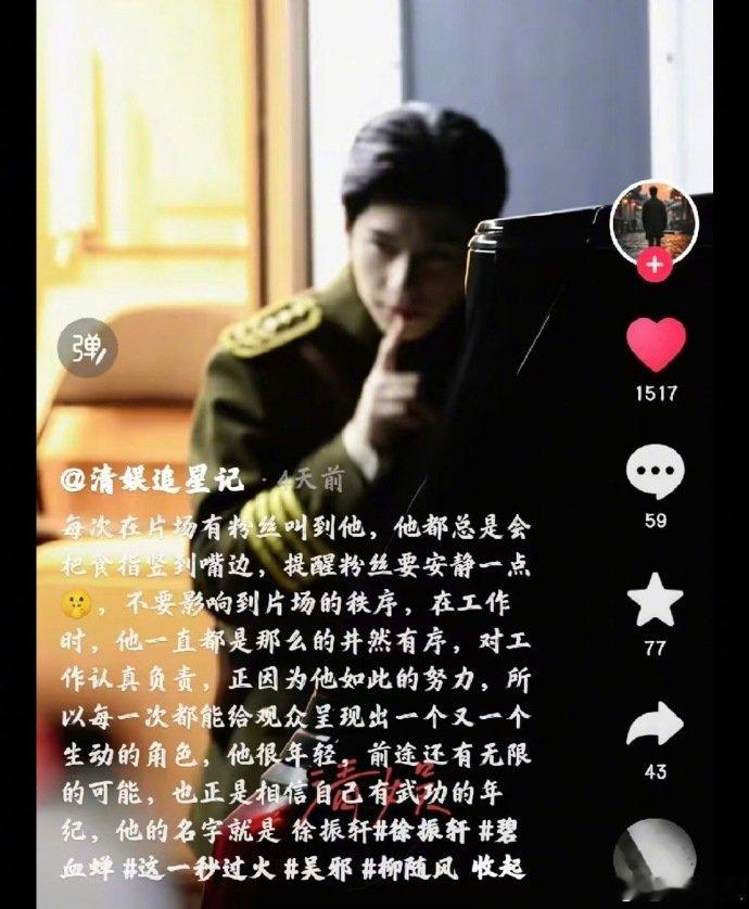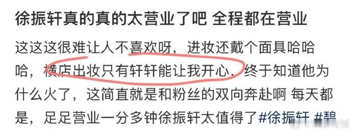 徐振轩半个月俘获4个代拍芳心 干这行最忌讳爱上客人徐振轩除外 半个月内多位代拍发文“爱上徐振轩”,笑称行规是“最忌讳爱上客人,徐振轩除外”。片场戴面具出妆整活、温柔提醒粉丝安静、还会偷偷看代拍镜头,这真诚又会撩的小细节,难怪能拿捏所有镜头后的人心!