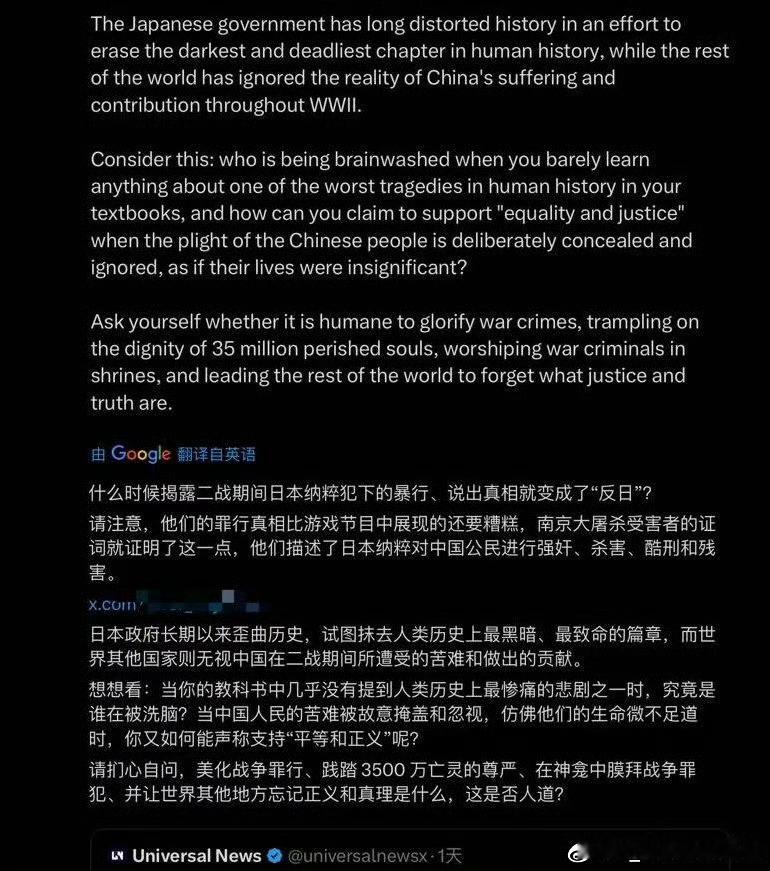 烽火十四这款游戏的预告片在海外点击量极高,引发了广泛关注。日本右翼及一些支持他们的西方网民对此反应激烈,一边散布歪曲历史的言论,一边指责该游戏“反日”。结果遭到全球网友的普遍反驳。众所周知,《使命召唤》系列的主线内容之一就是盟军与德国纳粹作战,但德国人会因此“破防”吗?为什么一旦涉及日本侵略他国的历史题材,日本右翼就如此敏感呢?日本右翼的荒谬之处,恰恰在于不断篡改历史、自以为能蒙蔽世人。当世界人民看清铁一般的事实与日军犯下的残暴罪行,他们每一次试图扭曲历史的言行,只会激起更强烈的反感和反弹。得道多助,失道寡助。PS:目前游戏本身信息有限,我不作具体评价。只希望它是一部尊重历史、而非消费情怀的作品,能够通过游戏这一载体,让全球更多玩家了解真实的历史,共同抵制日本右翼的谎言。