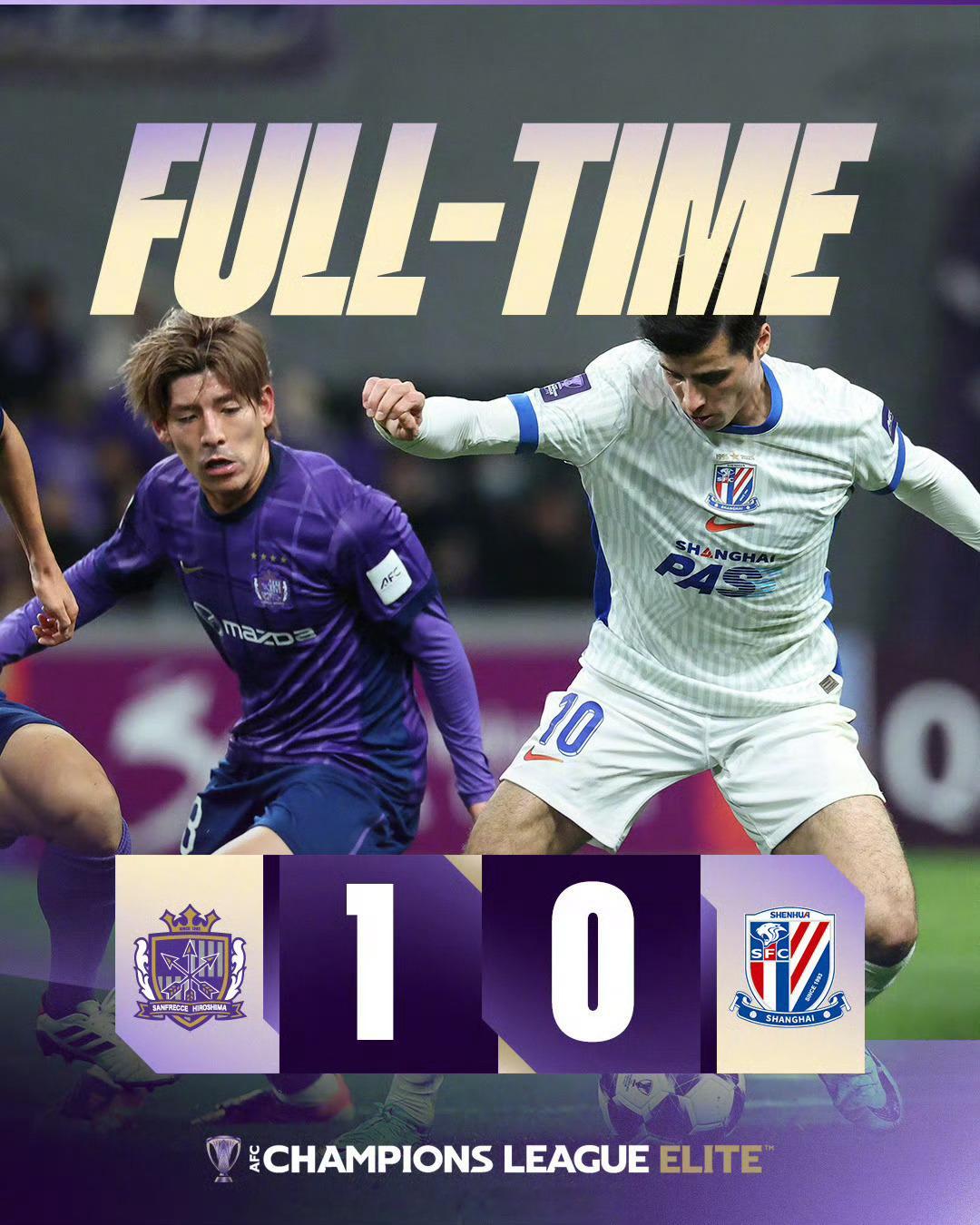 广岛三箭1比0上海申花亚冠精英联赛东亚区第6轮,上半场双方均无建树,下半场中村草太破门,但VAR介入确认越位在先,进球无效。随后荒木隼人头球破门打进全场唯一进球。上海申花遭遇亚冠三连败,以1胜1平4负积4分仍排名东亚区积分榜倒数第二。亚冠联赛上海申花亚冠三连败体坛风云