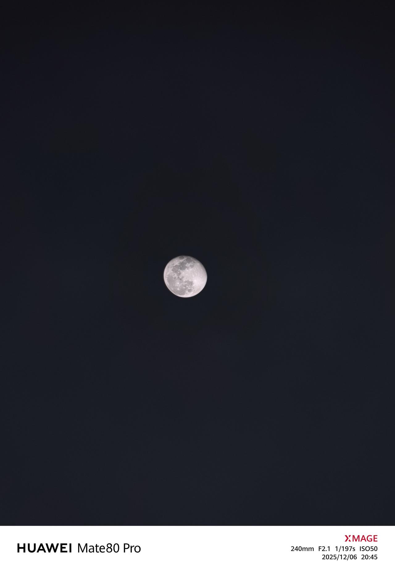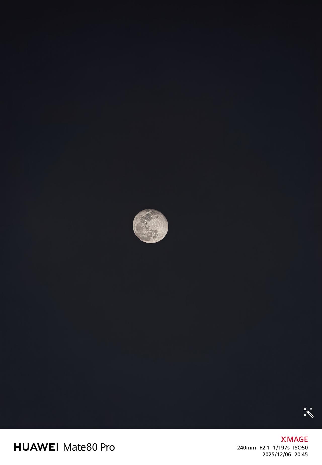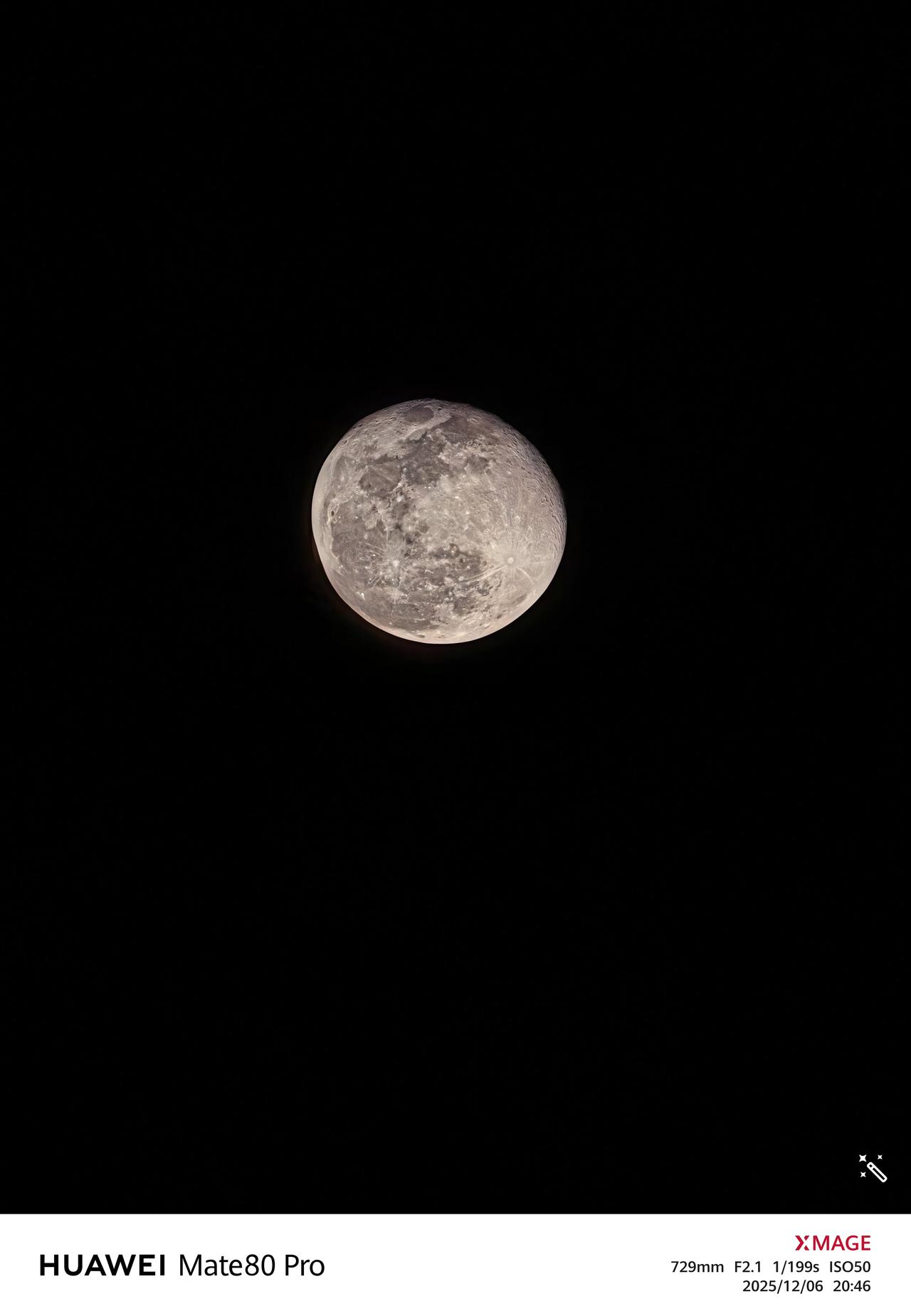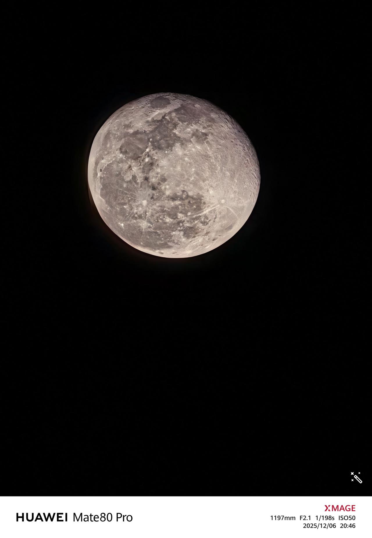 质疑华为,理解华为,成为华为! 虽然都是AI算法合成,但在月圆之夜,拍一张月亮的照片还是很有意思的,你只需要打开手机摄像头,对准月亮,拉近长焦镜头,剩下的交给华为mate80 pro,不要一下子拉的太近,不然你会看到嫦娥[狗头] 华为Mate80 科技快讯