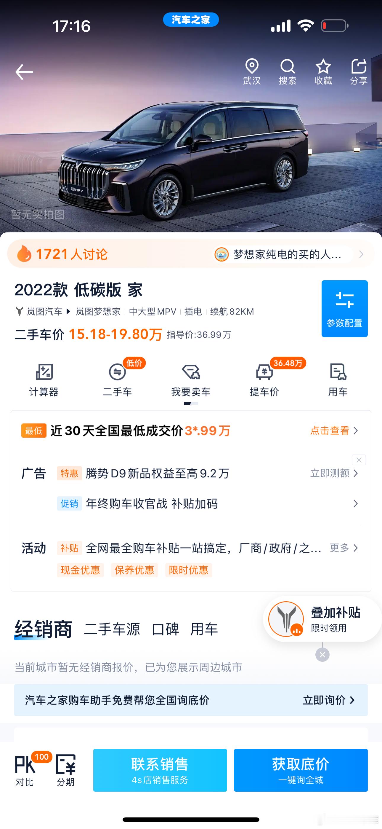 最新到店岚图梦想家2023年上牌6万公里铁件原漆现在售价17.X