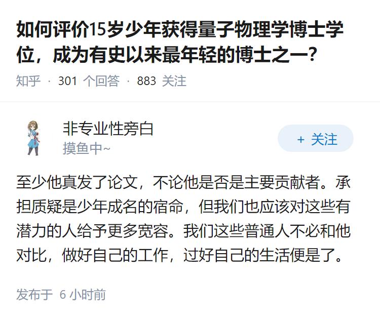如何评价15岁少年获得量子物理学博士学位,成为有史以来最年轻的博士之一?