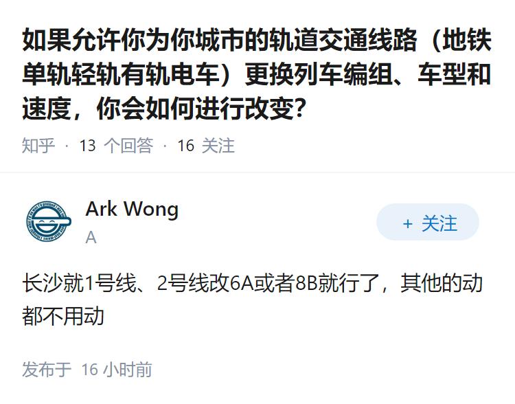 如果允许你为你城市的轨道交通线路(地铁单轨轻轨有轨电车)更换列车编组、车型和速度,你会如何进行改变?