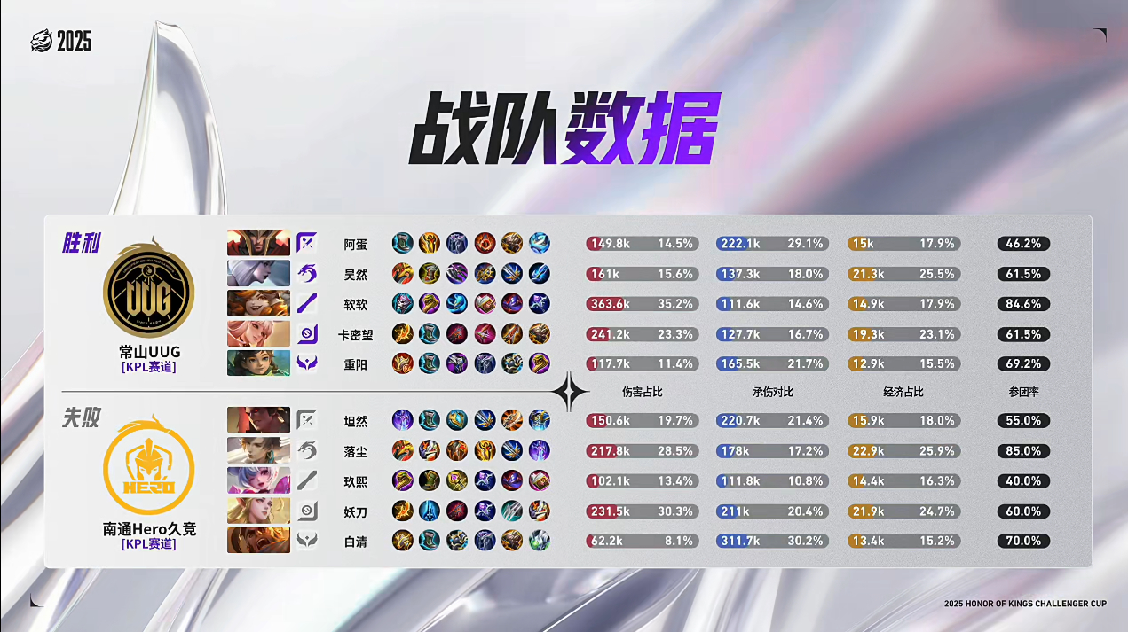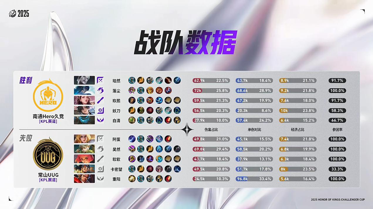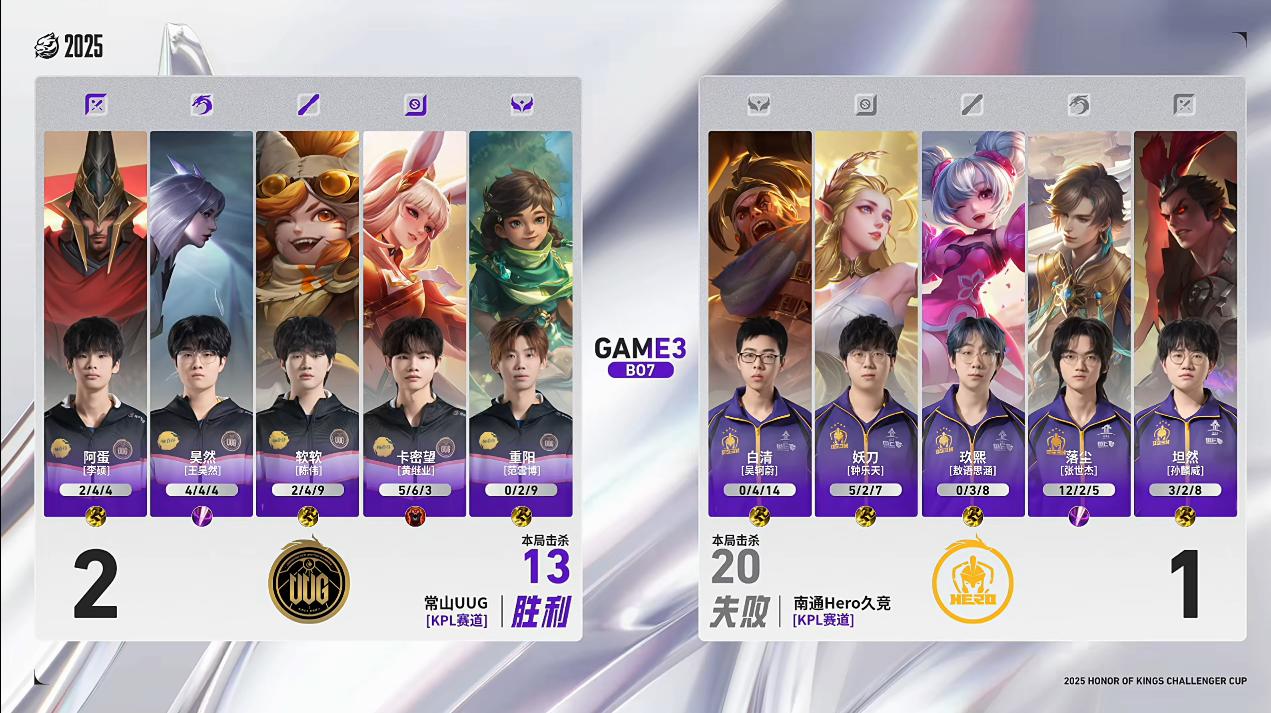 关羽先吃伤害撤出,苏烈再进场打乱Hero阵型,UUG击杀Hero四人