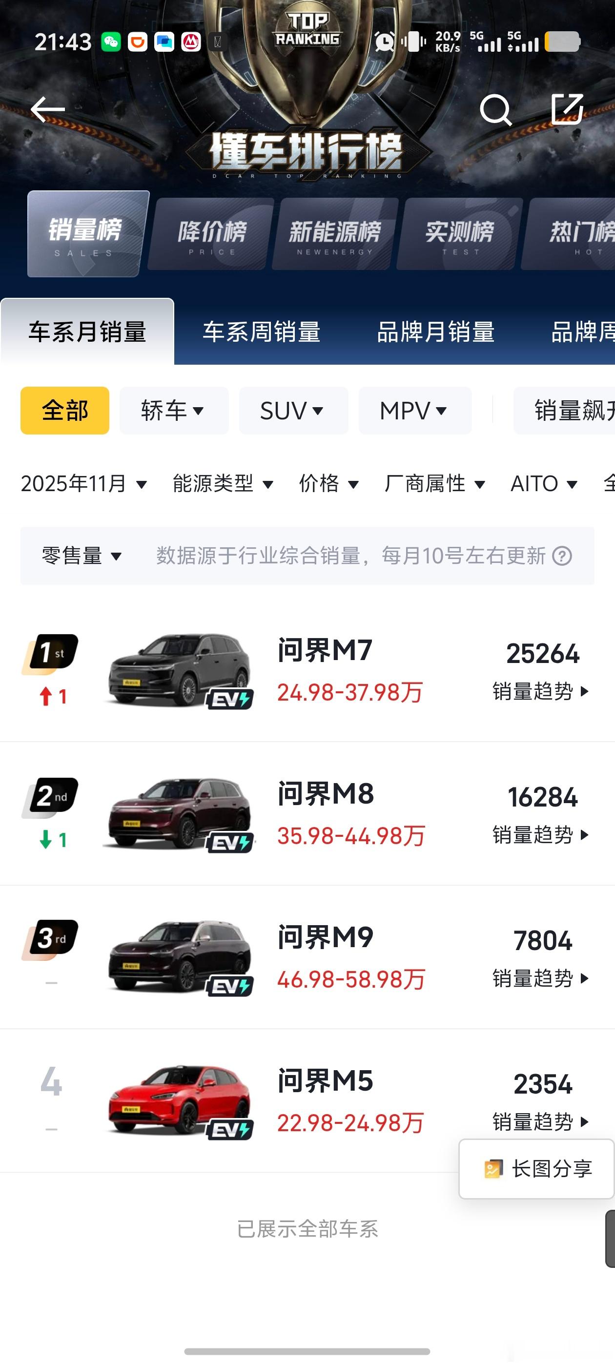 哇哈哈,昨天央视直播里余承东和赛里斯集团董事长张兴海透露,明年问界会在 5789 四款车的基础上把 6 也给补上去。看看明年 6 会把问界销量带到怎么样的高度问界56789产品矩阵将补齐