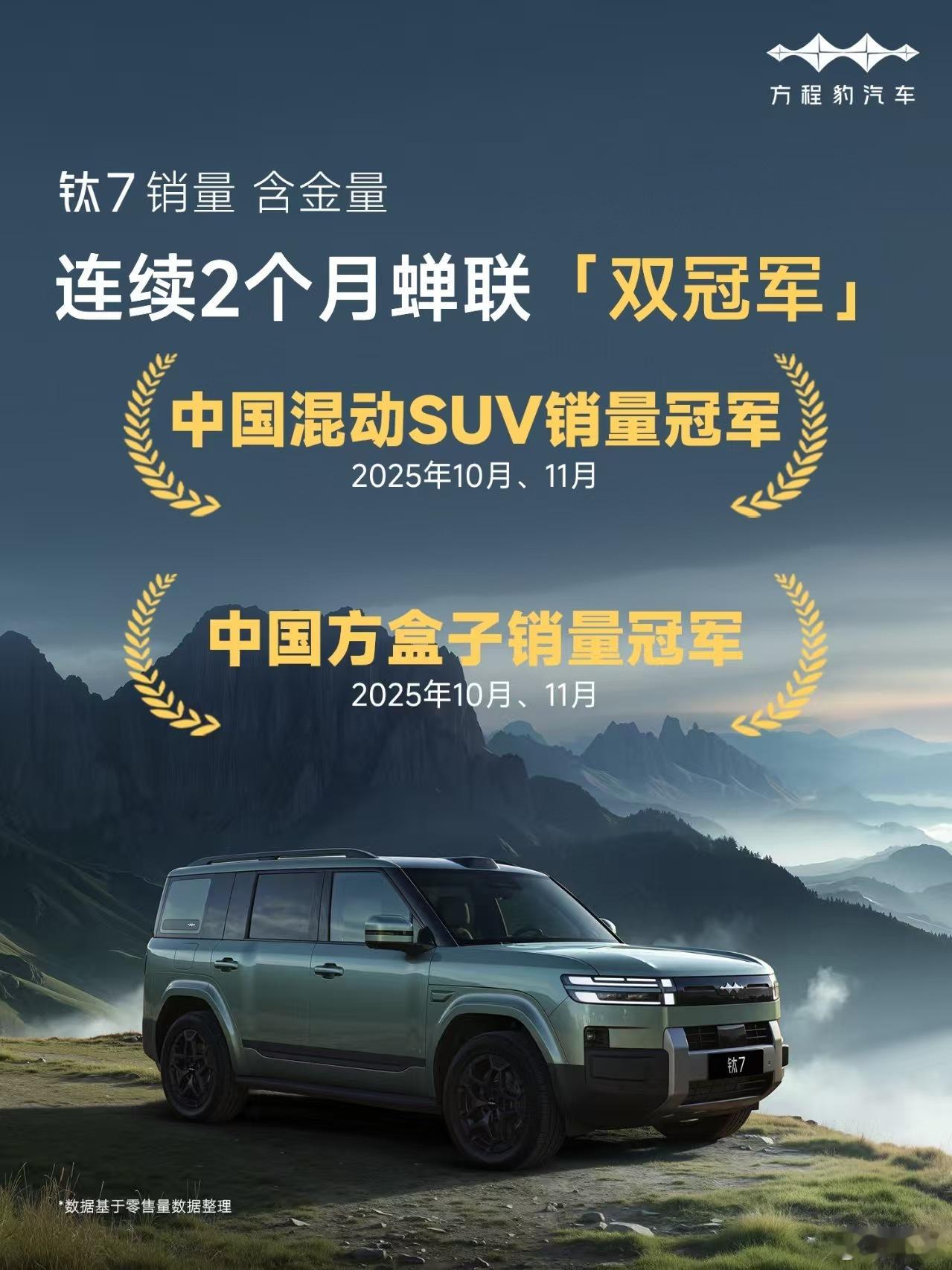 方程豹钛7真的销量真的出乎意料的火爆!上市80天累计销量破5万,连续两月销量超2万台已经是目前混动SUV与“方盒子”细分市场的双冠军了!