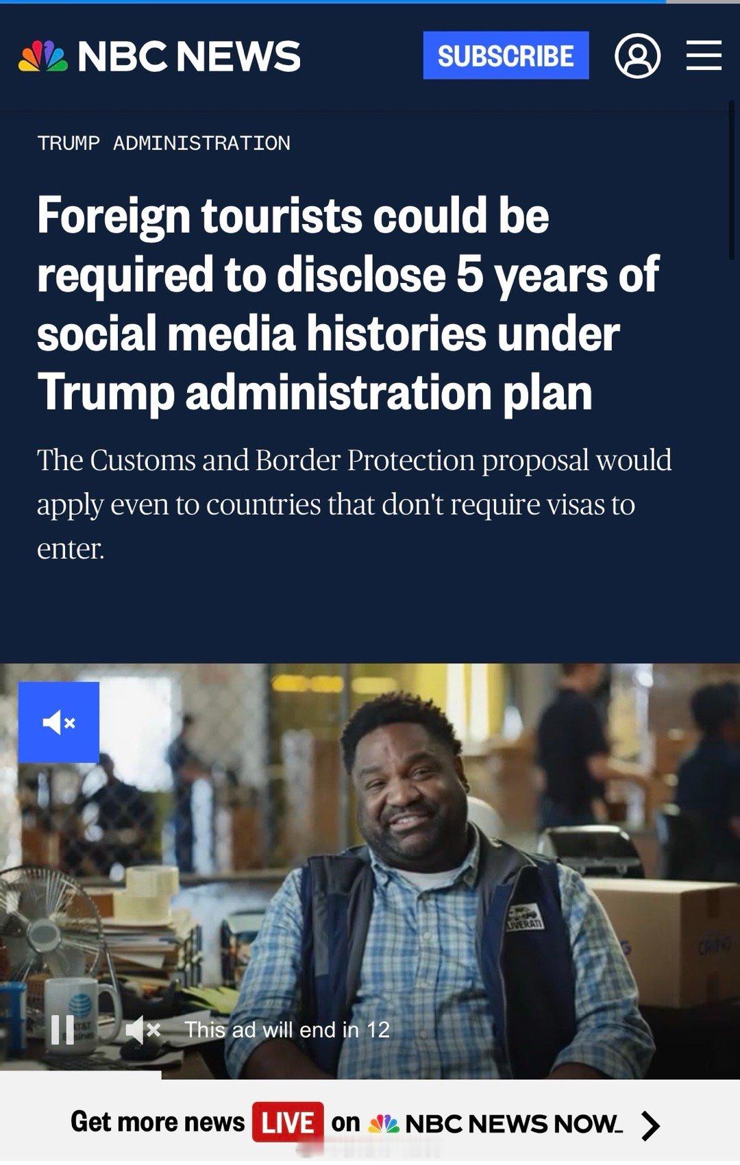 美国海关与边境保护局周二发布通知,计划要求所有外国游客必须提供过去五年的社交媒体