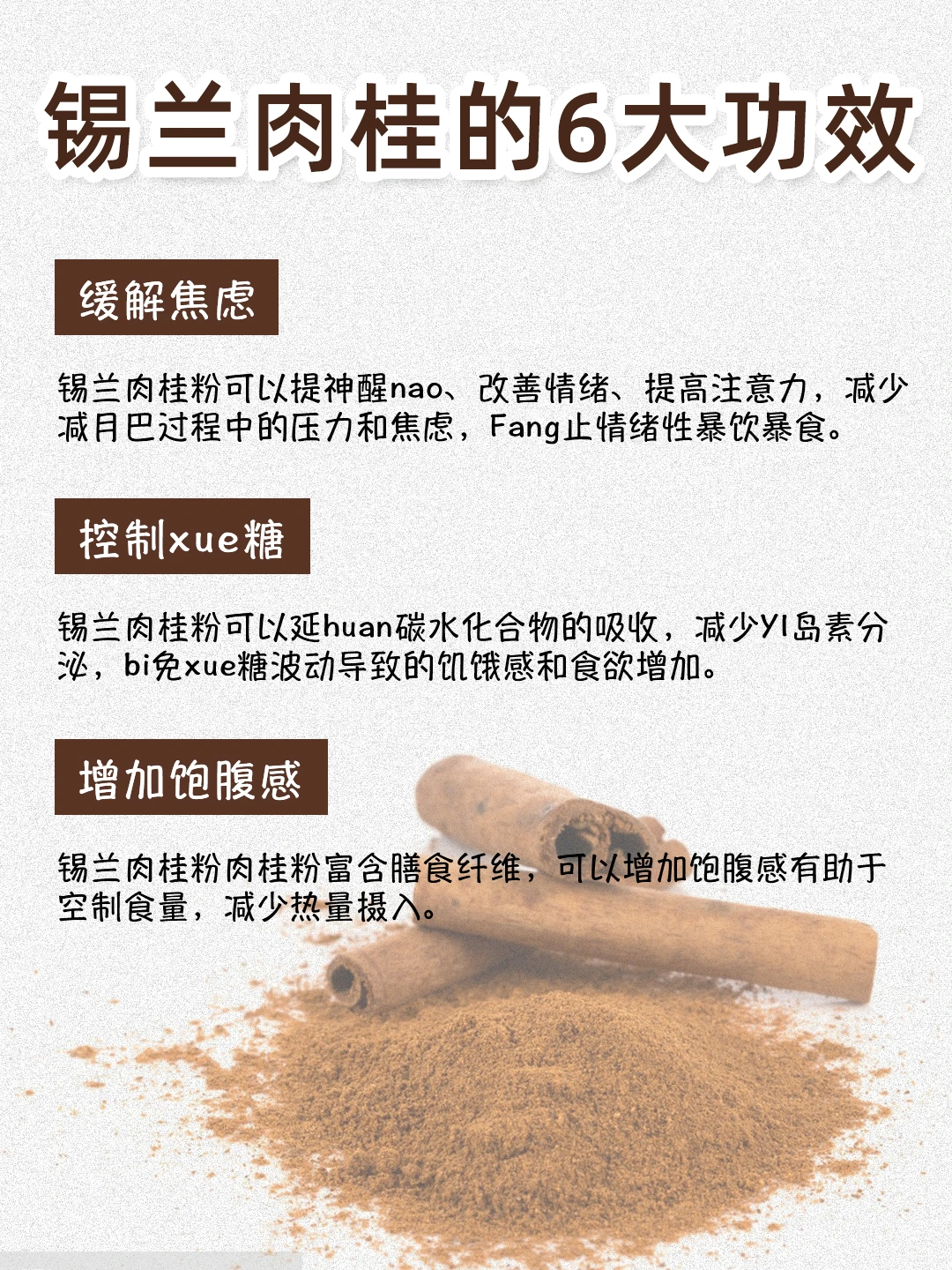 肉桂粉!肉桂粉可是世界上最古老的香料之一,被誉为超级食物的哦!它富含抗火🔥、抗🐑化等营养元素,对身体的好处真是不少哇!