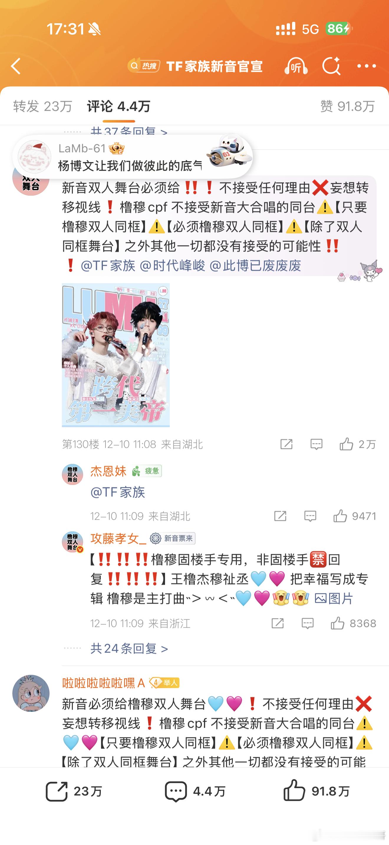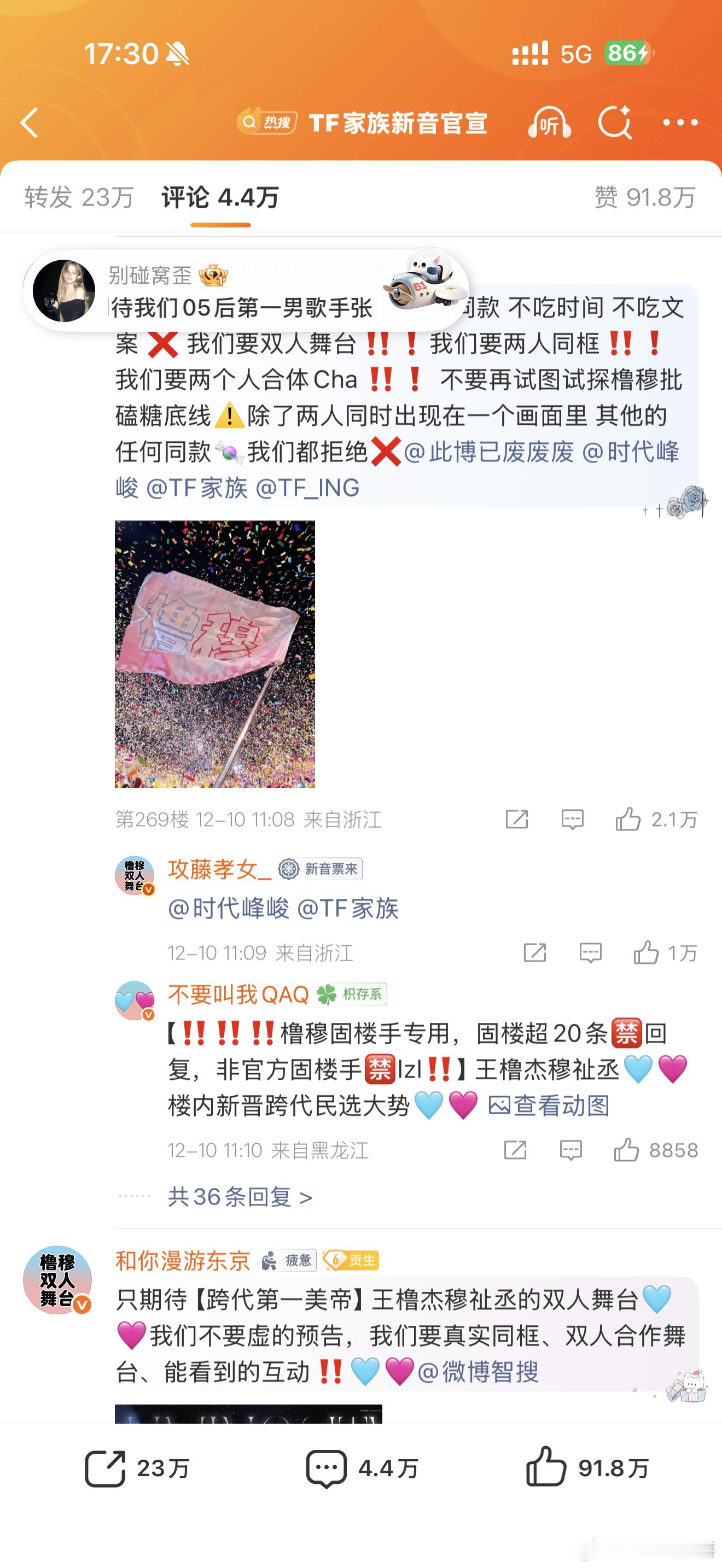 TF家族新音官宣王橹杰穆祉丞的cp粉好能打,现在官宣微博评论区都是要cp粉喊话双人舞台