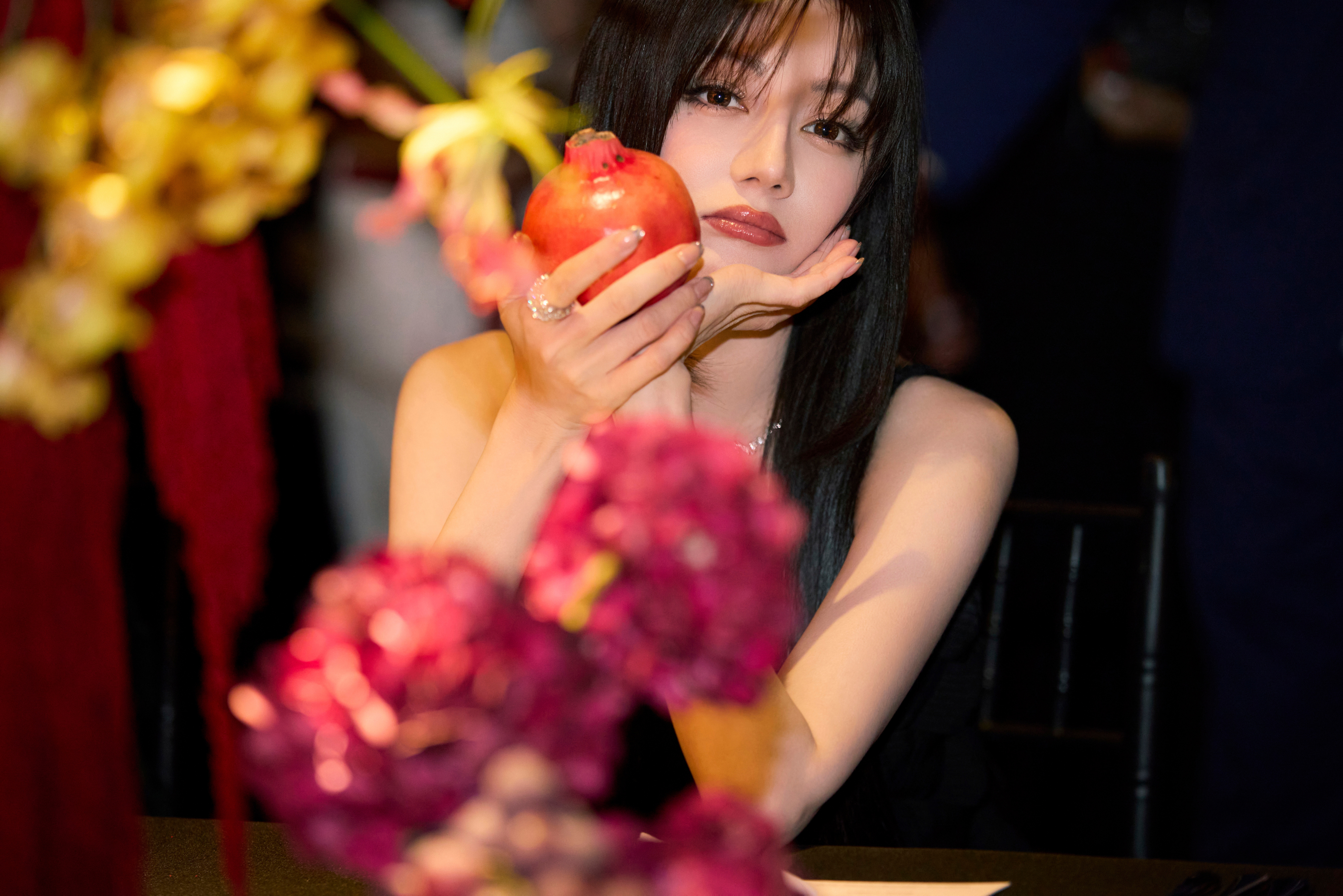 高圆圆旁边这是谁啊??身材好好啊,就是这个裙子的布料……