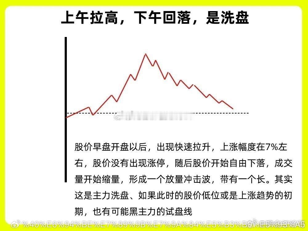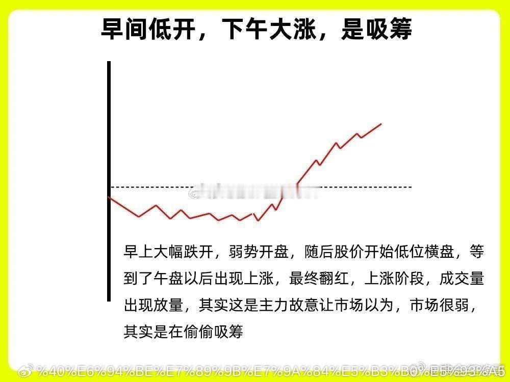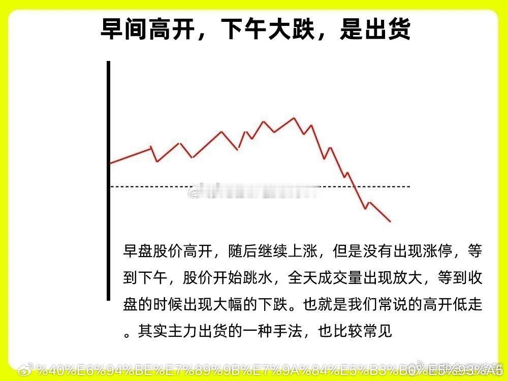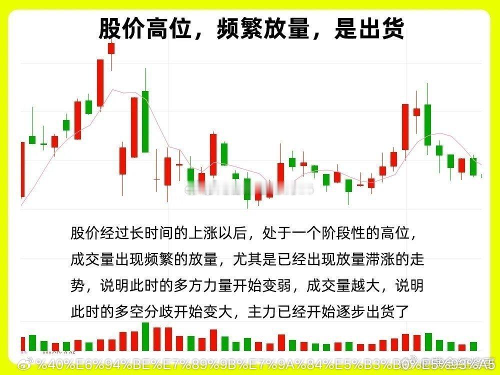 这7句炒股口诀,帮你轻松判断主力意图,困扰散户的看盘难题直接破解!不管是新手小白还是老股民,都能一看就懂,千万别错过,一定要认真看完!一、早间低开,下午大涨,是吸筹早上股价大幅低开,看着走势很弱,之后在低位横着走,到了下午突然发力上涨,最后翻红,而且上涨时成交量明显变大。这其实是主力故意制造弱势假象,让散户恐慌卖出,自己偷偷吸筹呢。二、早间高开,下午大跌,是出货早盘股价高开,还往上冲了一段,但就是不涨停,到了下午突然跳水,全天成交量放大,收盘时跌得不少,这就是常说的“高开低走”。这是主力很常见的出货手法,借着早盘的上涨诱骗散户买入,自己趁机卖货。三、上午拉高,下午回落,是洗盘早盘股价快速拉涨,涨到7%左右就停住了,没封涨停,之后开始慢慢回落,成交量也跟着变小,K线上会留下一根长上影线。这是主力在洗盘,要是股价还在低位或者上涨初期,也可能是主力在试探市场抛压。四、股价低位,频繁放量,是建仓股价在低位横盘了很久,波动不大,但成交量却时不时放大,形成“价格不涨、成交量增多”的样子。这说明市场开始活跃,主力在偷偷买筹码建仓,这种建仓过程一般会持续挺长时间。五、股价高位,频繁放量,是出货股价涨了很久,到了高位后,成交量经常放大,但股价却不怎么涨(也就是“放量滞涨”)。这说明买盘的力气越来越弱,多空双方分歧变大,主力已经在慢慢卖出筹码了。六、低位小涨小跌,突然放量长阳是启动股价在低位长时间窄幅震荡,每天不是小阴小阳就是十字星,没什么大动静,突然某天放量拉出一根大阳线。这说明有大资金进场,一般是主力想快速脱离自己的成本区,行情要启动了。七、高位小涨小跌,突然放量长阴是出货股价涨了很久后在高位横盘,每天小涨小跌波动不大,突然某天放量大跌,拉出一根长阴线。这是主力在快速离场出货,要是这根阴线一下子跌破了5日、10日、20日均线,就形成了“断头铡刀”形态,风险特别大。