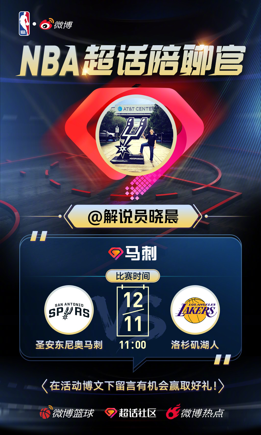 明天NBA杯四分之一决赛焦点战马刺vs湖人 !超豪华MBA超话陪聊官 阵容,陪大家一起聊球看球!进入球队超话马刺洛杉矶湖人 一起关注比赛吧!