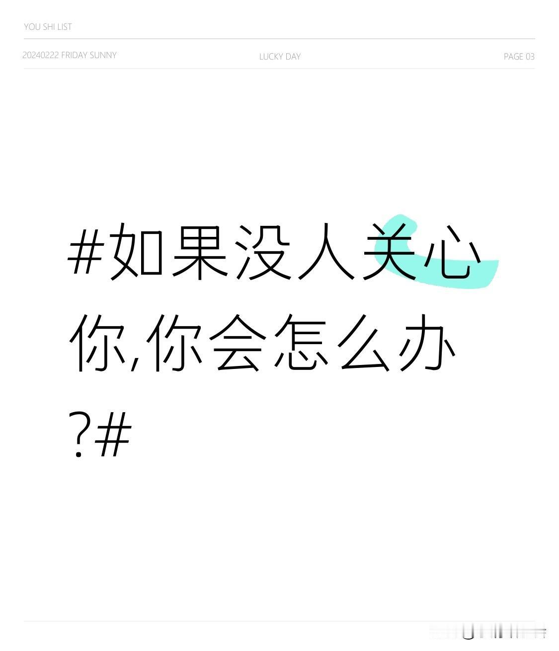 如果没人关心你,你会怎么办? 要是没人关心,咱也别慌。孤独其实没那么可怕,心理学都说了,适度孤独利于自我反思和内心探索。就像村上春树,一个人跑步、写作,在孤独里创作出经典。咱也能静下心和自己相处,倾听内心声音。 人是社会性动物,咱也能主动出击。参加兴趣小组、志愿者活动,比如喜欢绘画就加入绘画社团,和同好交流分享,说不定新朋友和关心就来了。 要是在关系里感受不到对方的关心,先反思自己是不是单方面付出。确定尽力后,就勇敢表达感受,用“我”语句沟通。也能改变自己的行为,去激发对方的关心。