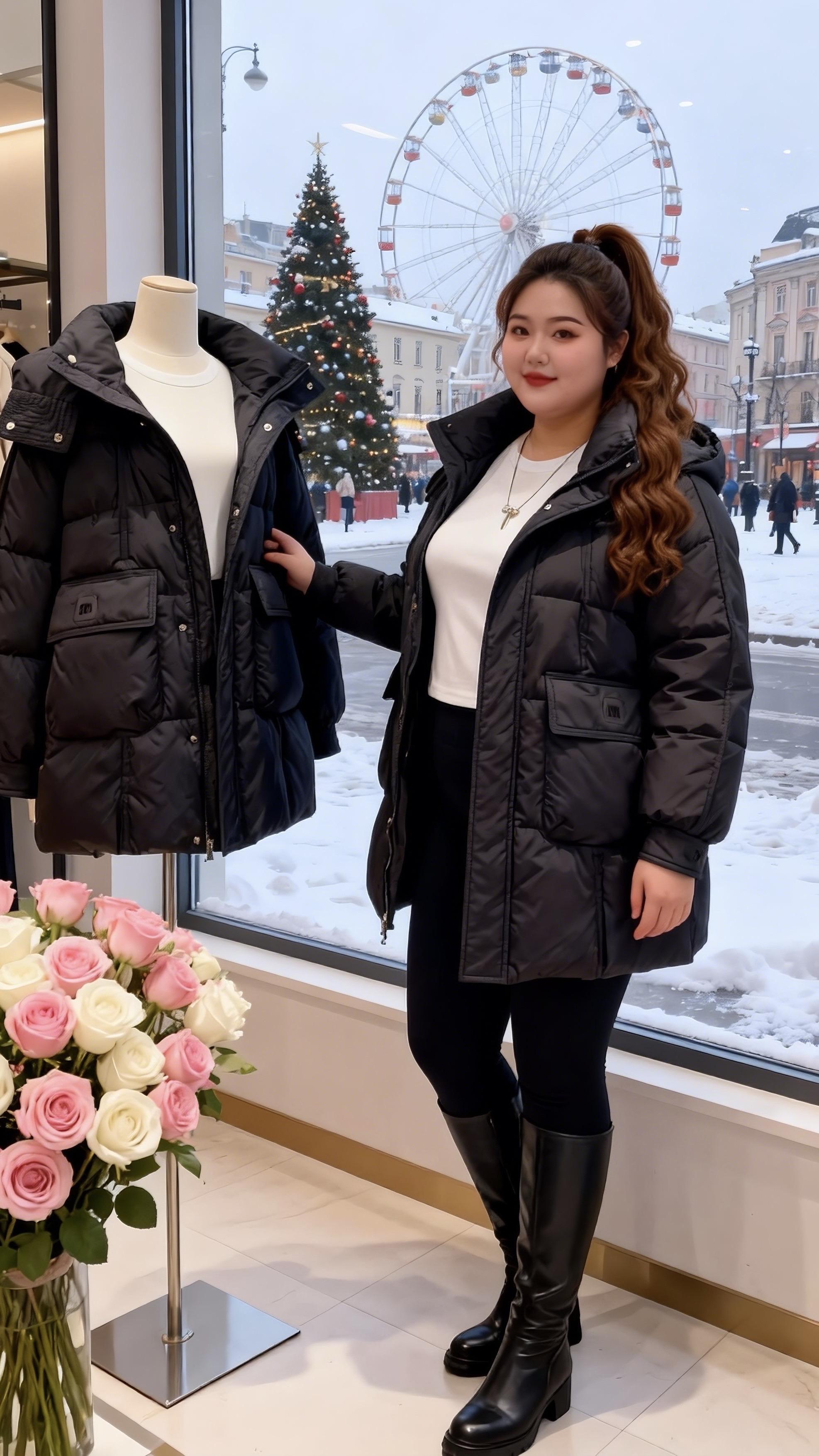 大码女装 棉服外套 时尚休闲穿搭 加厚保暖 双12冬日氛围感穿搭大赏