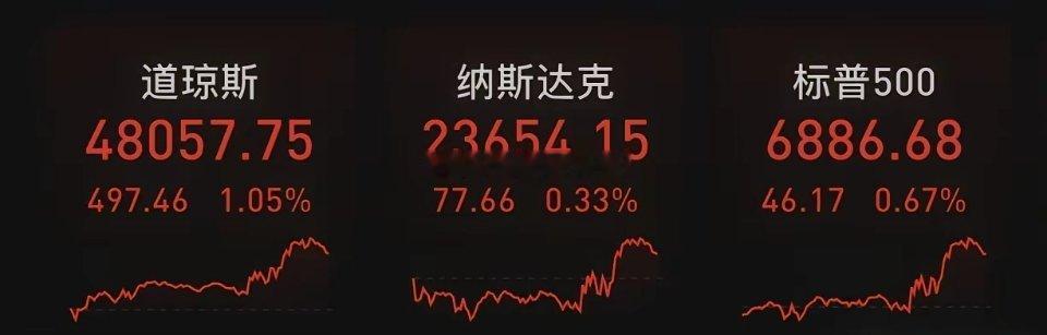 北京时间2025年12月11日凌晨,美股周三收高,道指上涨近500点,道指涨497.46点,涨幅为1.05%,报48057.75点;纳指涨77.67点,涨幅为0.33%,报23654.16点;标普500指数涨46.22点,涨幅为0.68%,报6886.73点。标普500指数逼近历史最高收盘纪录。在美联储决定今年再次降息后,交易员押注明年将有更多宽松政策出台。