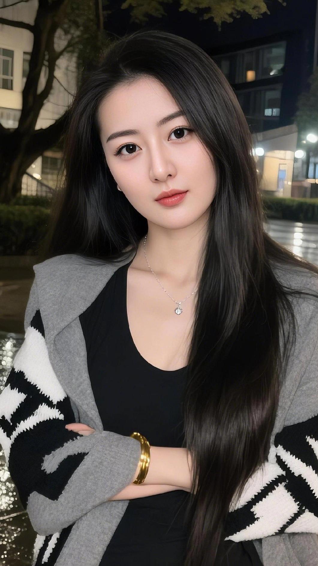 优雅黑发少女,灰色毛衣搭配,时尚又温暖。