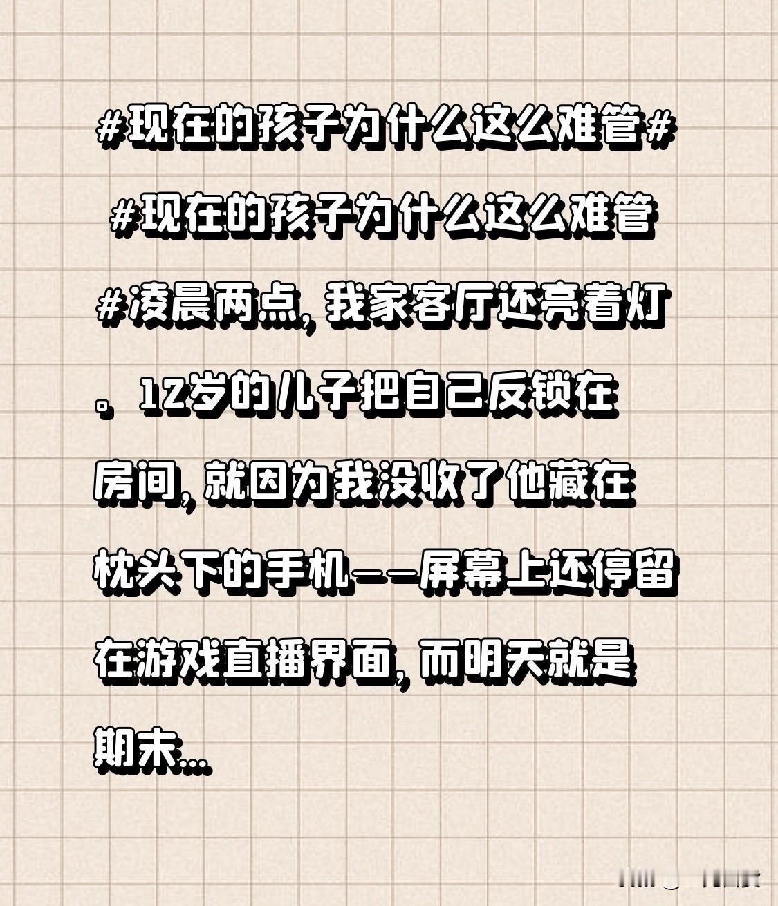 凌晨两点,我家客厅还亮着灯。12岁的儿子把自己反锁在房间,就因为我没收了他藏在枕