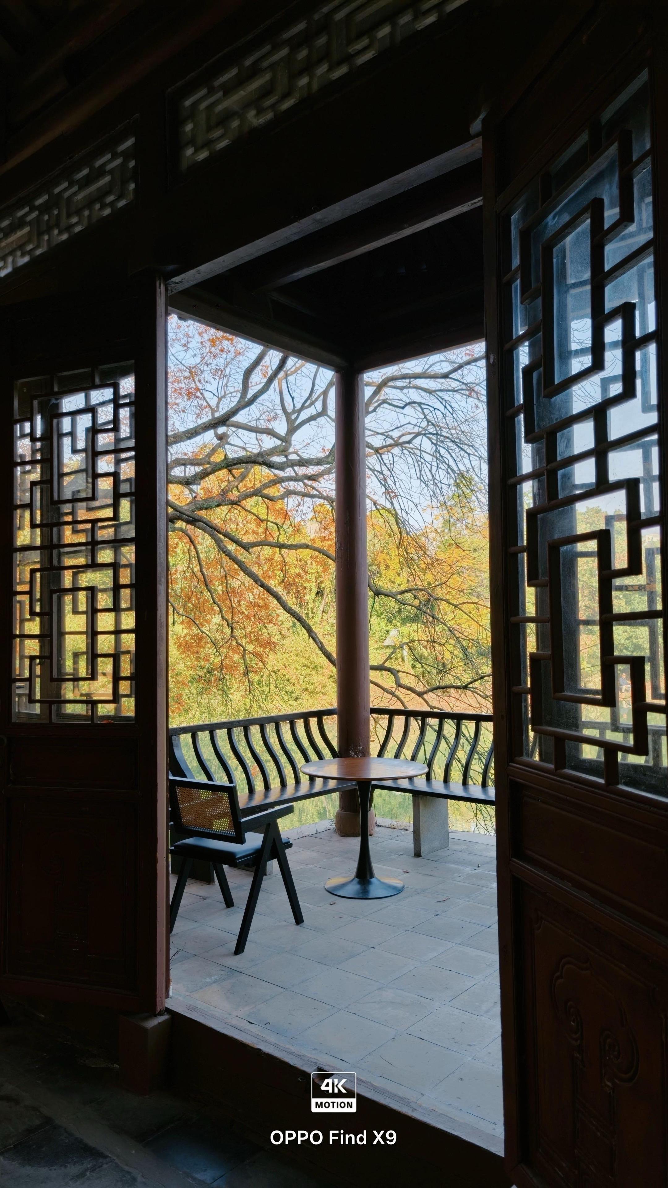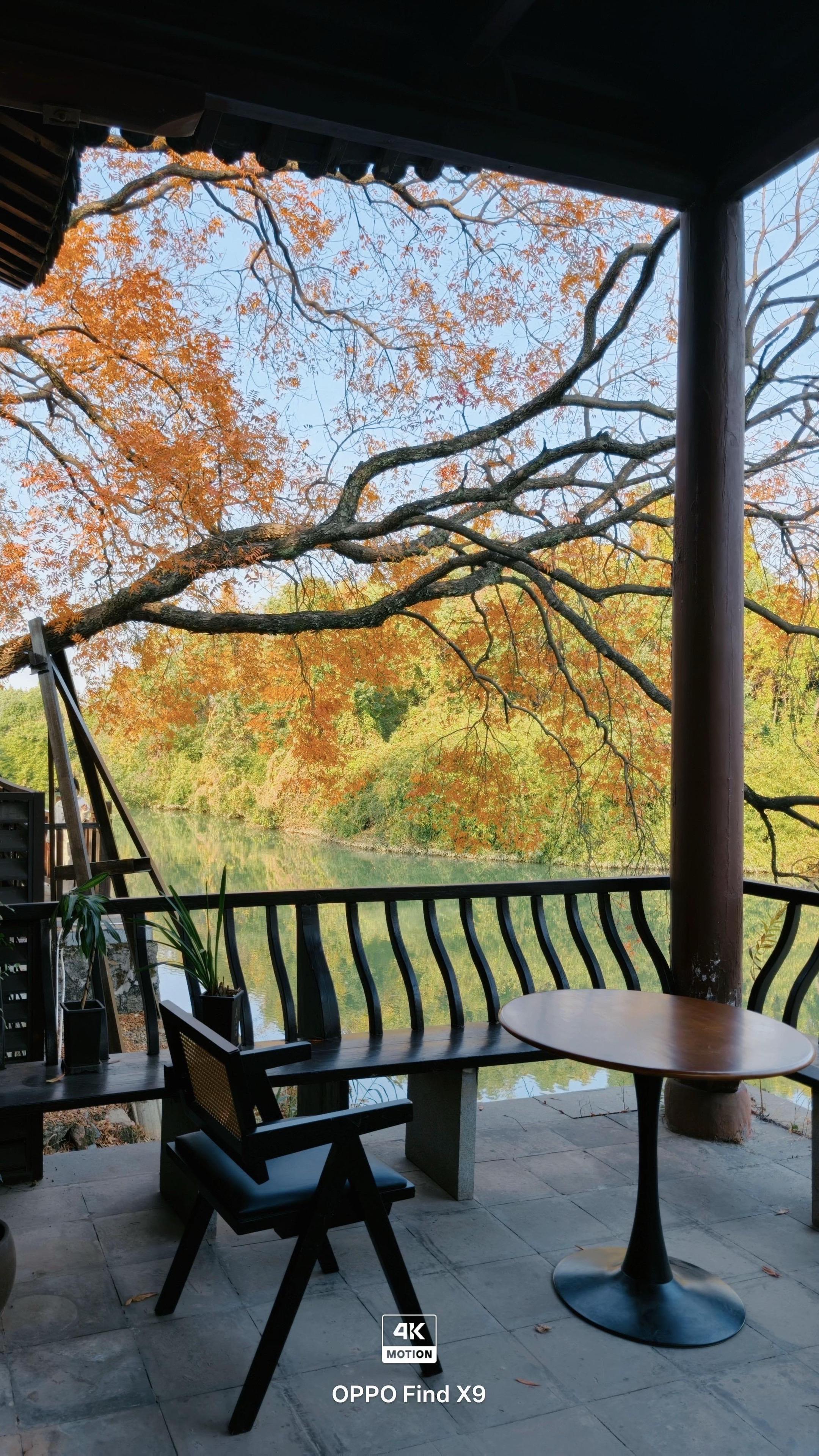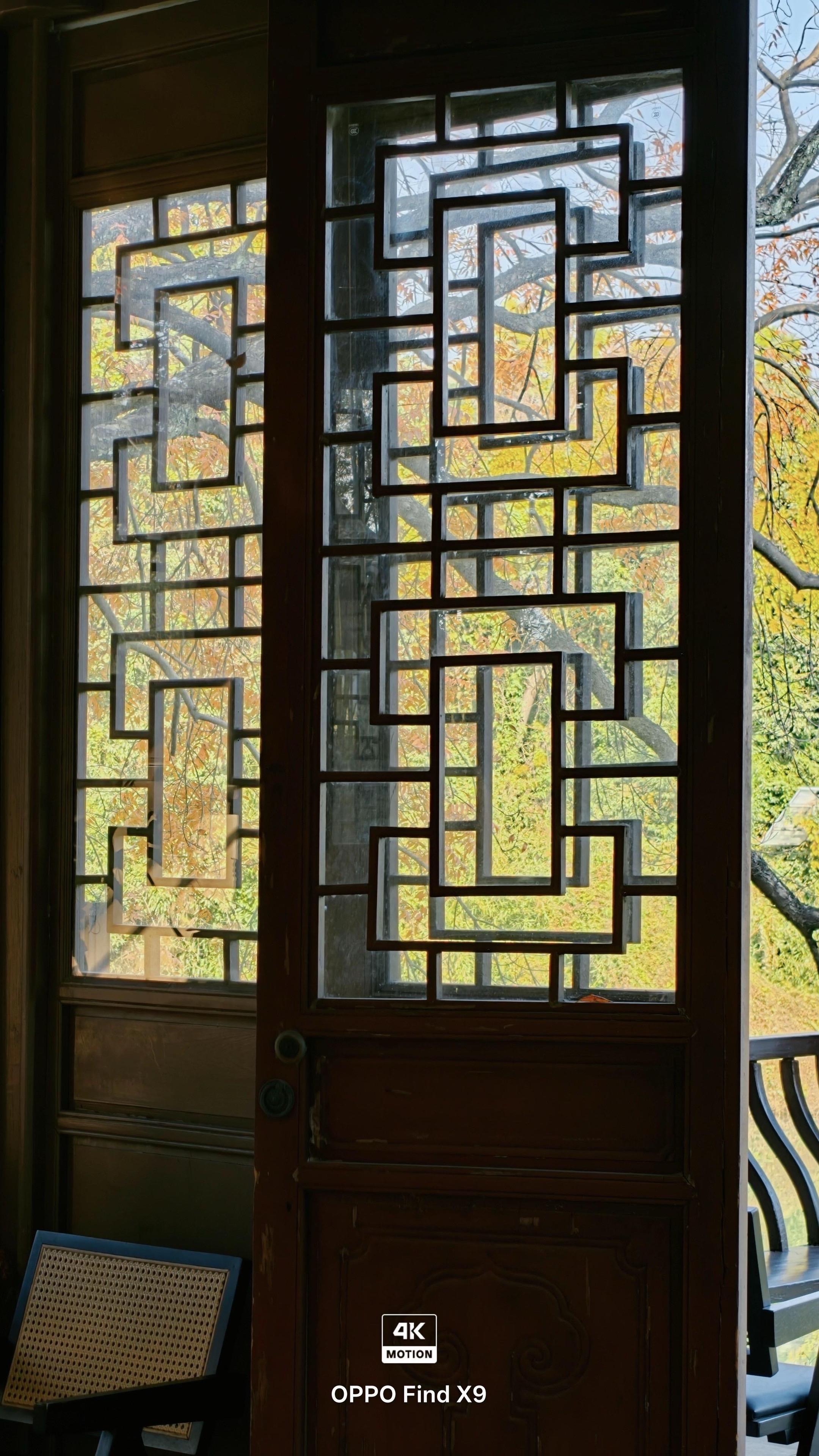 3. 色彩搭配:门框的朱红与乌桕的橙红形成暖色系呼应,画面更和谐。