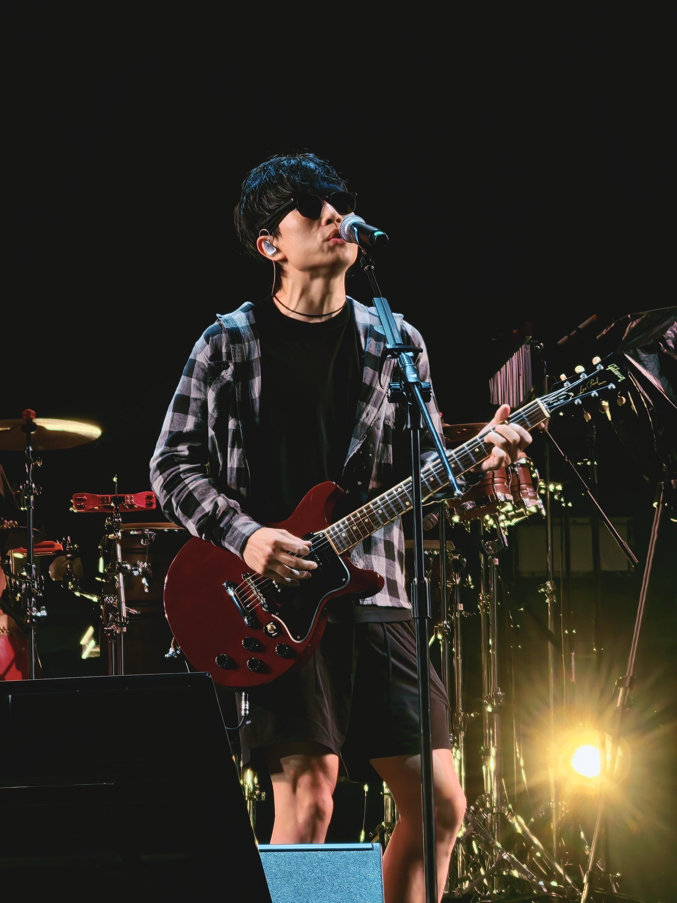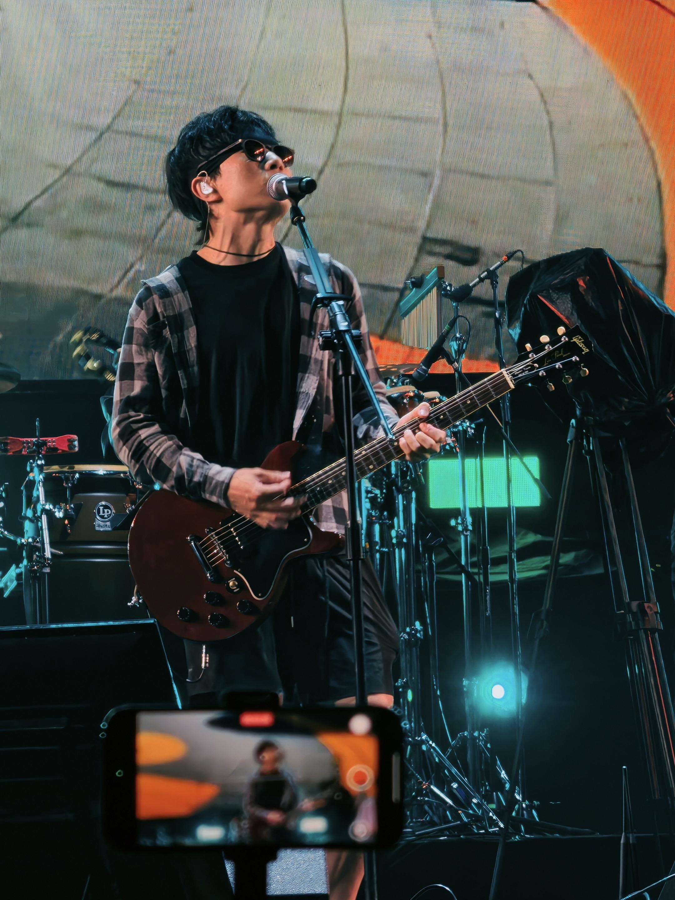 👉 蓝色追光时按快门📸!舞台左侧的冷光打在乐器上会有金属反光感⚡️,我拍的红色电吉他直接拍出燃烧
