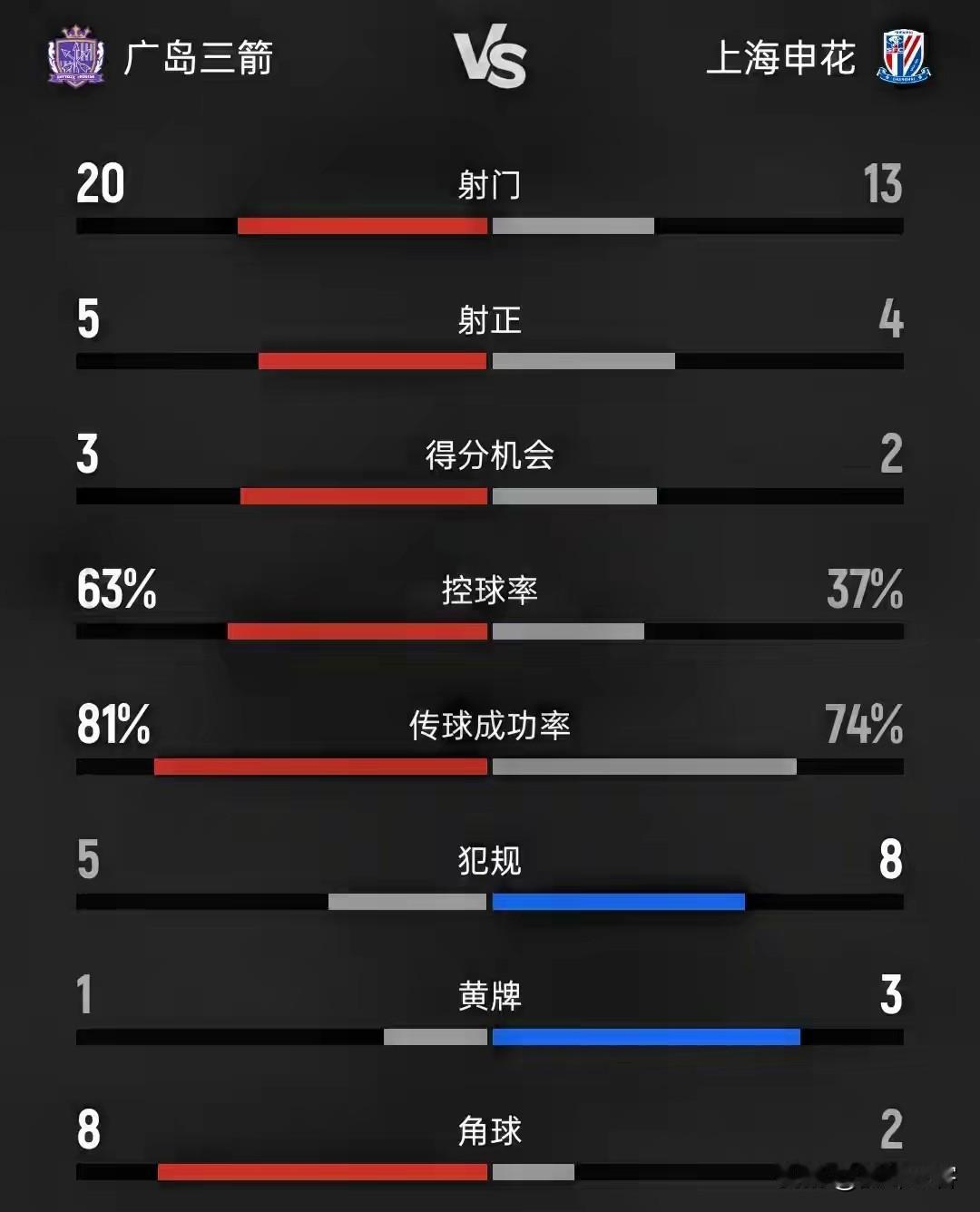 中超联赛已经结束,本以为出战亚冠的这几支球队毫无羁绊,结果没想到他们依然是“外战外行”! 昨晚中超亚军对阵J联赛球队广岛三箭,结果他们在坚守了半场比赛后之后,最终还是被对手在下半场一击致命攻破了球门输掉了比赛,在本场失利之后申花在亚冠赛场已经是“三连败”了,6轮比赛仅积4分依然排名倒数第二,在小组赛还有两轮的情况下落后第八位的蔚山现代4分,进入淘汰赛只剩下理论可能。 本场比赛申花的控球率仅为37%,射门13次射正4次;广岛三箭控球率为63%,射门19次射正5次打进1球,看似在得分机会不差上下,但是就比赛过程来看,申花在攻防两端不同程度都存在问题,而荒木隼人的一击致命正是因为申花后防线上出现漏人的情况产生的。 有些国内媒体发出的所谓遗憾输球不过是为自己寻找的一个自我安慰的台阶罢了,最根本的问题还是因为
