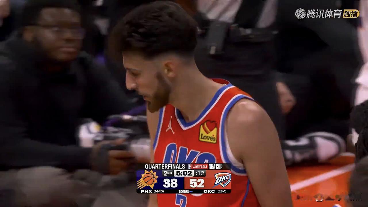 上半场最佳:切特.霍姆格伦!遮天大帽送给狄龙,NBA杯赛1/4决赛雷霆队76-48领先太阳队26分 今天早上八点半,NBA杯赛1/4决赛,雷霆队主场迎战太阳队。上半场结束雷霆队74-48领先太阳队26分,上半场发挥最好的是雷霆队的切特.霍姆格伦,三个大帽送给了狄龙,霍姆格伦三分球3中3得到13分。 太阳队得分最多狄龙12中4得到14分,雷霆队亚历山大8中6得到17分。